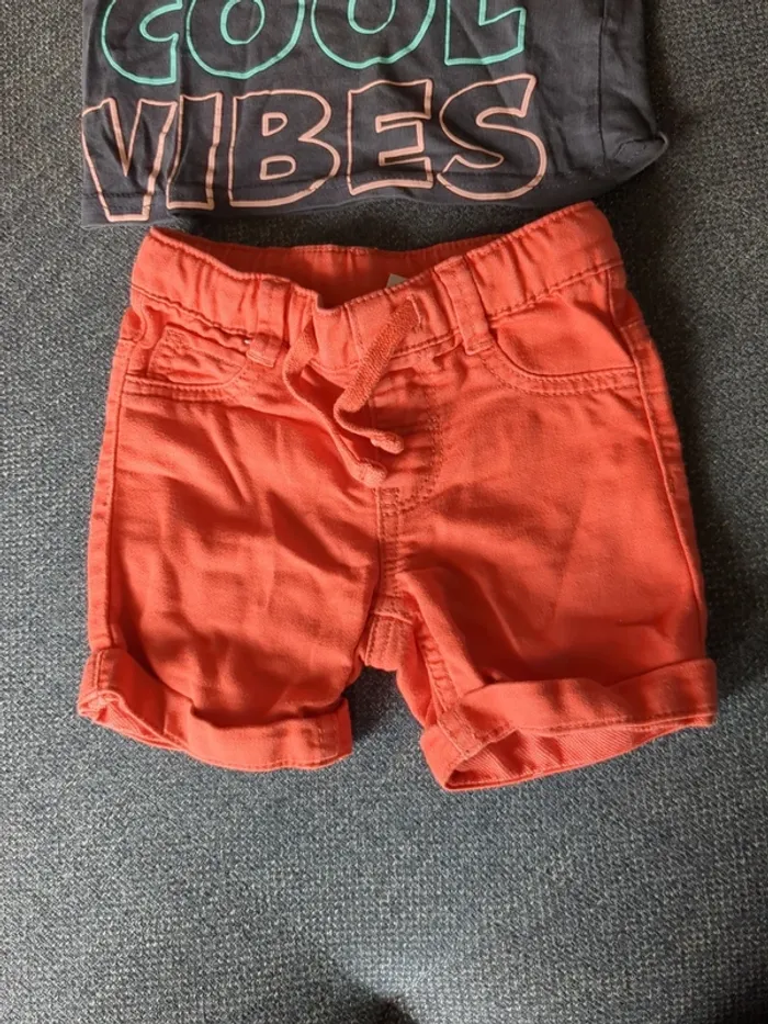 Ensemble short rouge Hema et tee shirt gris Gémo 18 mois