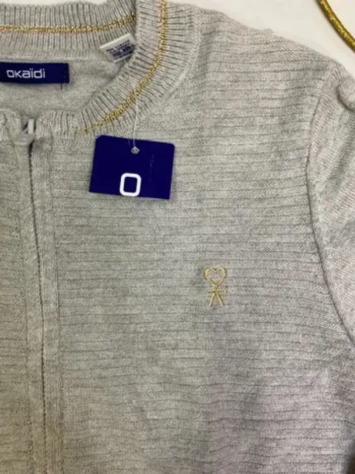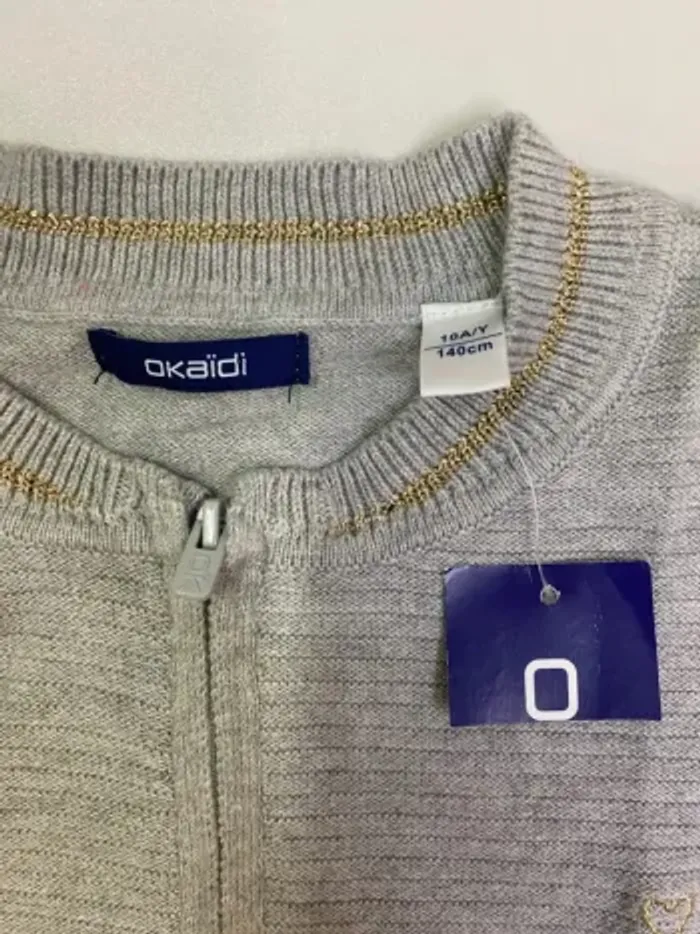 Gilet fille - zippé - neuf - gris - Okaïdi - Taille 10 ans - photo numéro 1