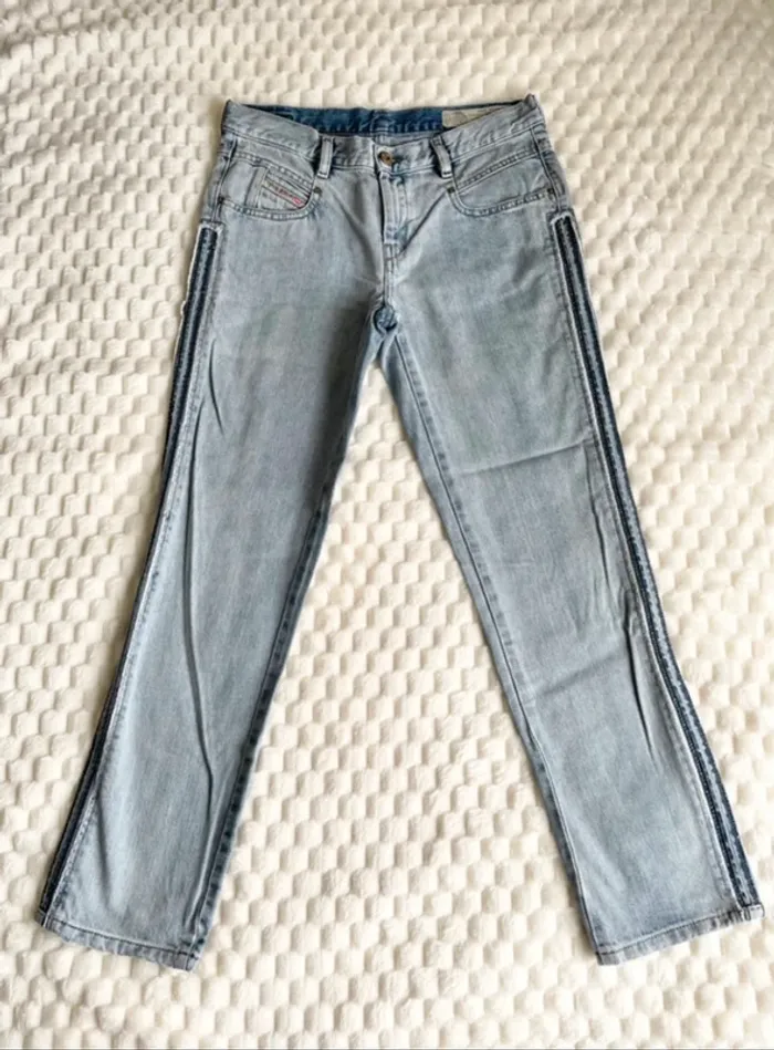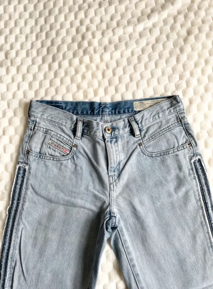 Jean bleu clair Diesel taille 25x32 Très bon état Taille 37cm Taille au bas 88cm Entrejambe au bas 66cm #celdjifemme #celdjibas #celdjits pour voir tous mes articles en S, réductions activées sur les lots