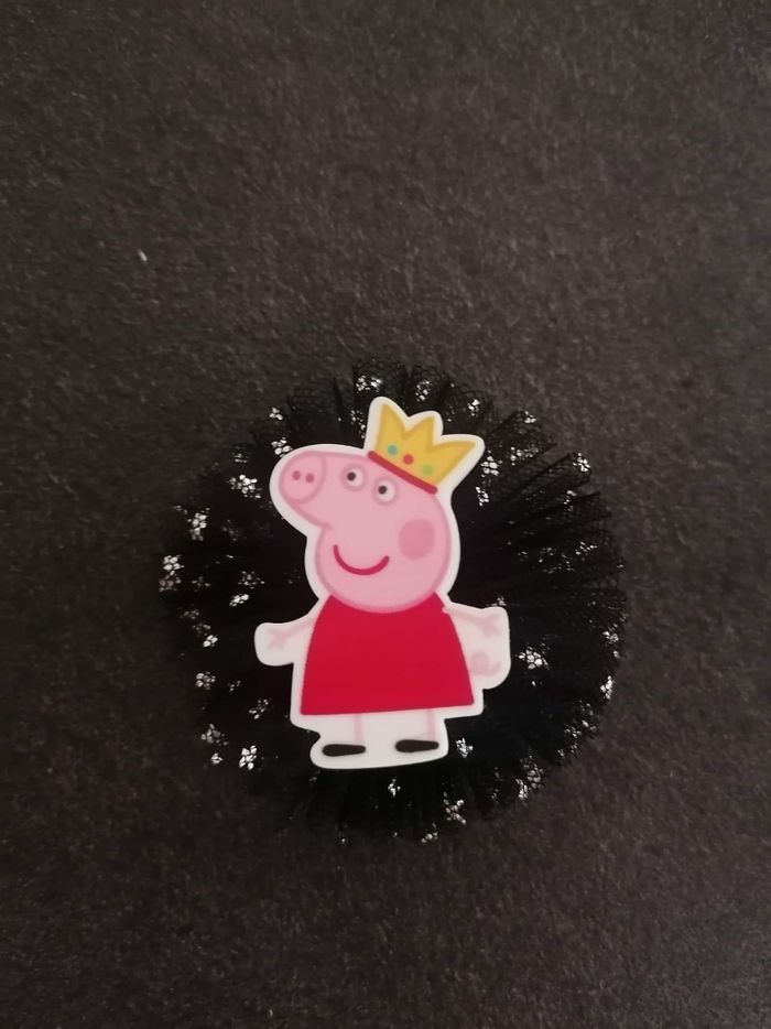Pince à cheveux avec du tulle noir avec étoiles argentées et Peppa Pig neuve