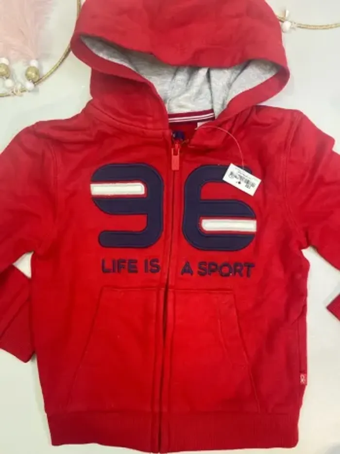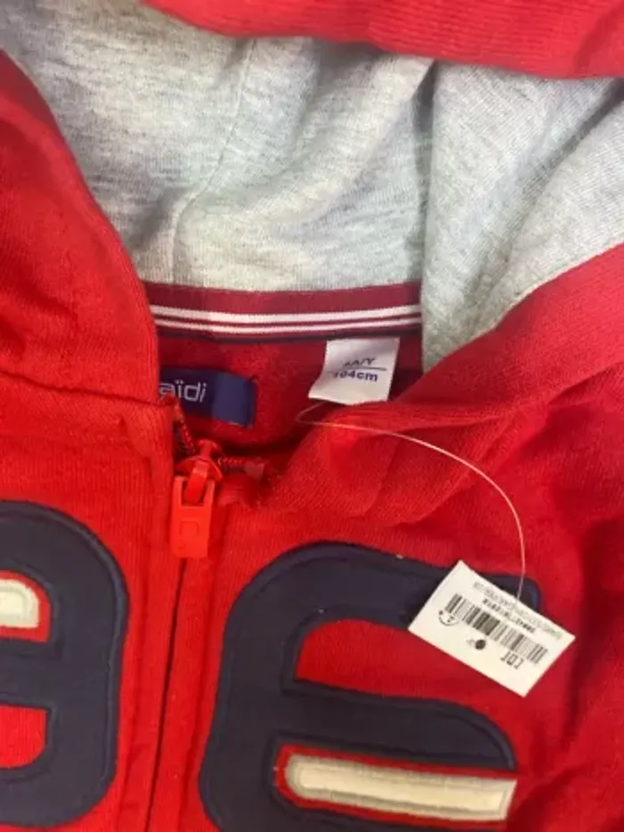 Sweat zippé à capuche garçon de couleur rouge - État : Neuf avec étiquette Marque : Okaïdi Taille : 4 ans - 104 cm #ferreirasabboy4ans