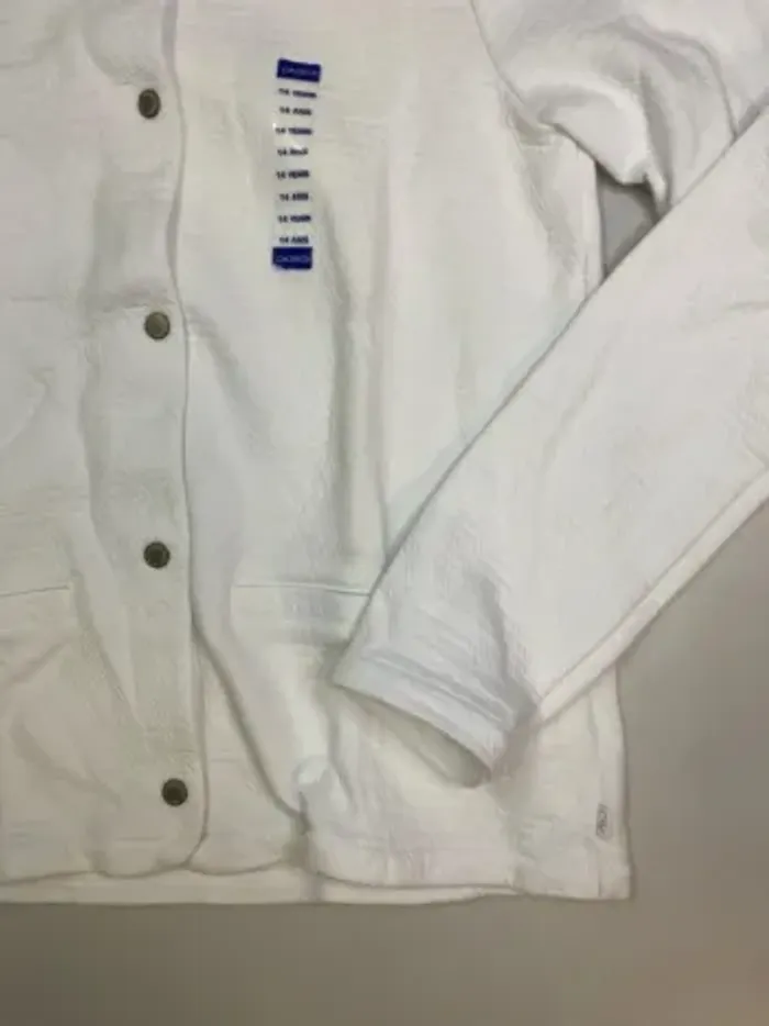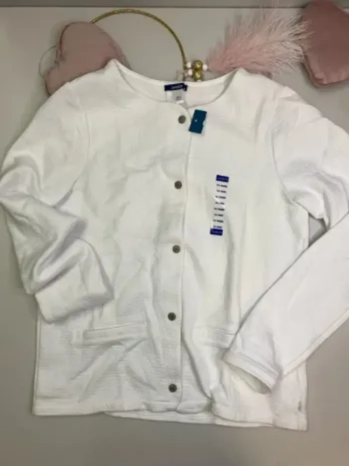 Gilet / veste molletonné fille de couleur blanche à Bouton pression État : Neuf avec étiquette Marque : OKAIDI - Prix 25,99€ Taille 14 ans - 158 cm #ferreirasabfille14ans #ferreirasabfille13ans
