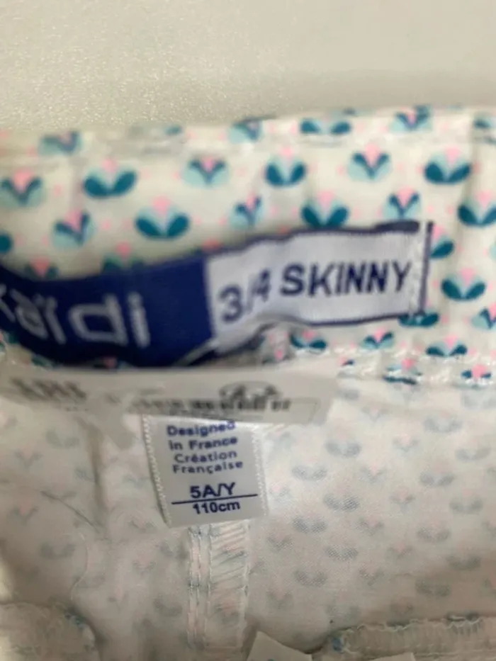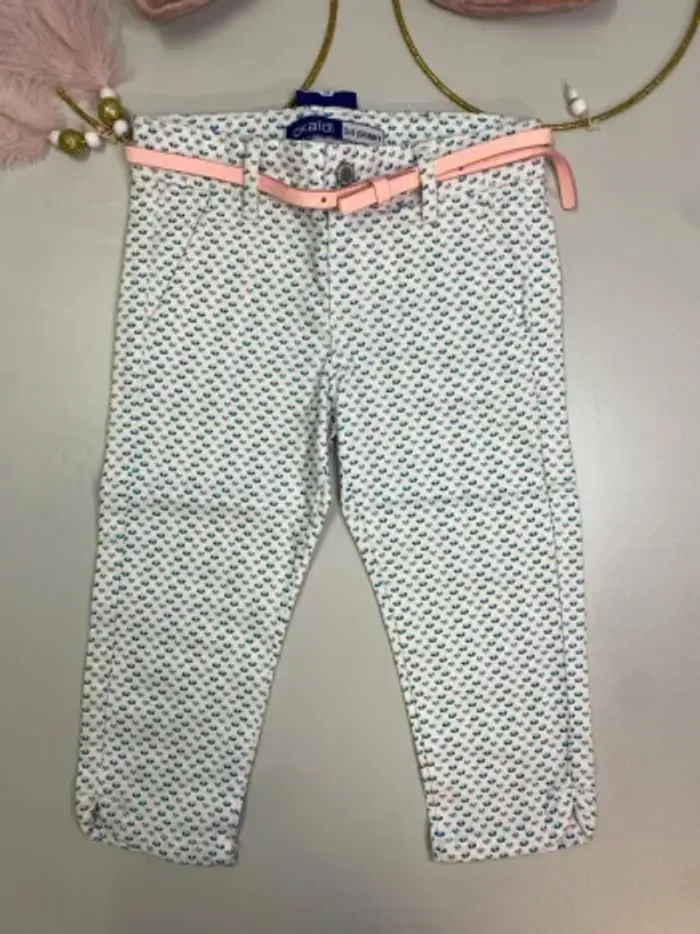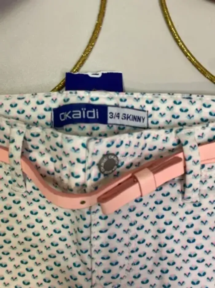 Pantalon fille (neuf) coupe 3/4 skinny avec sa ceinture rose Marque : OKAÏDI Taille: 5 ans - 110 cm #ferreirasabfille5ans