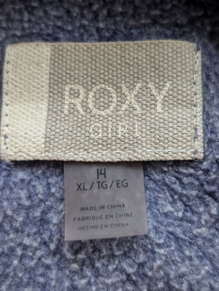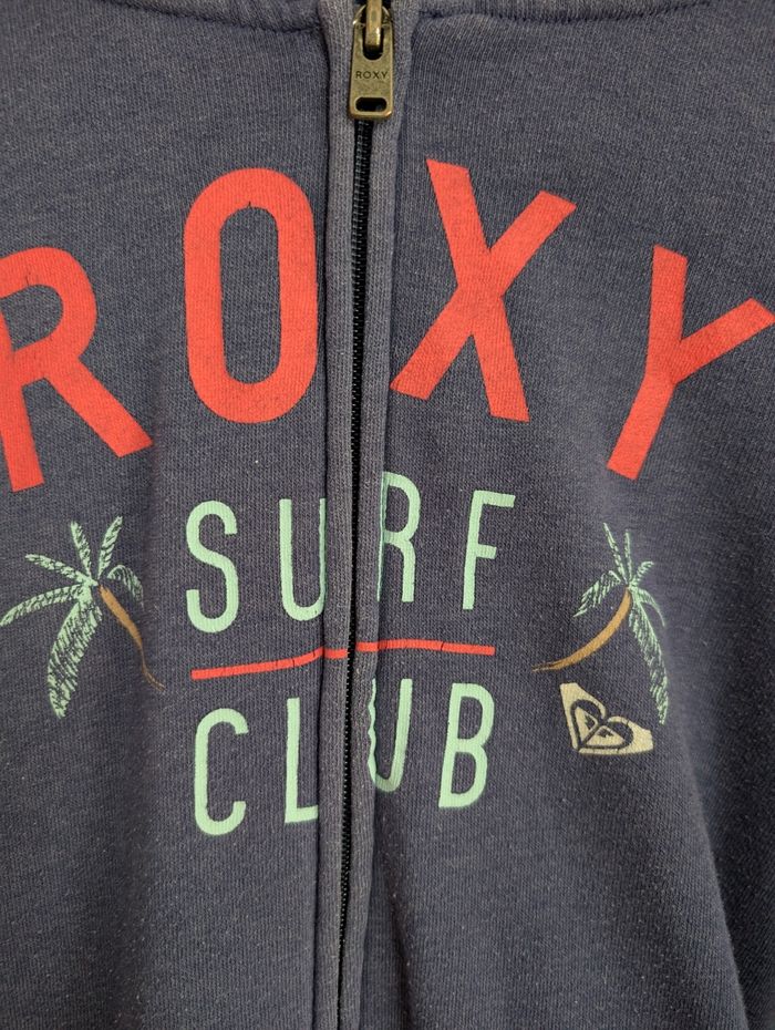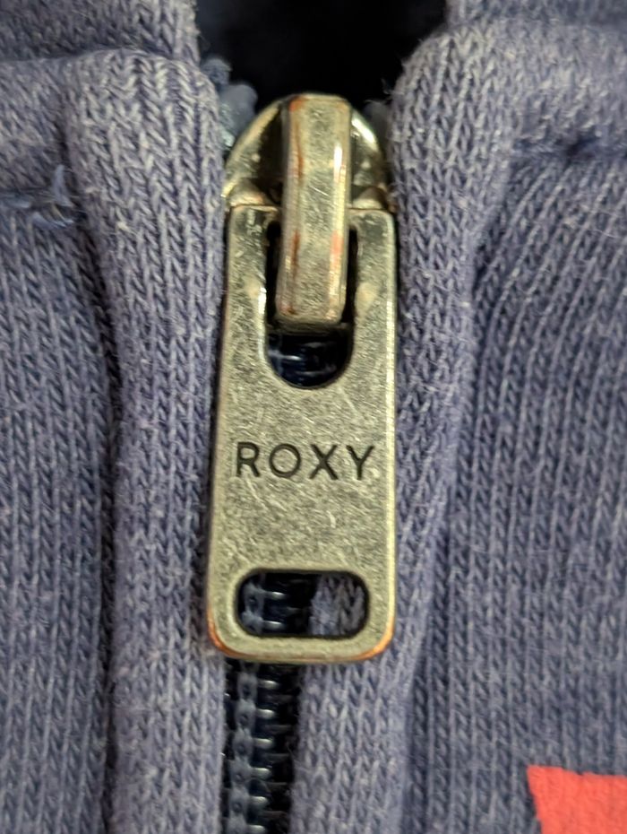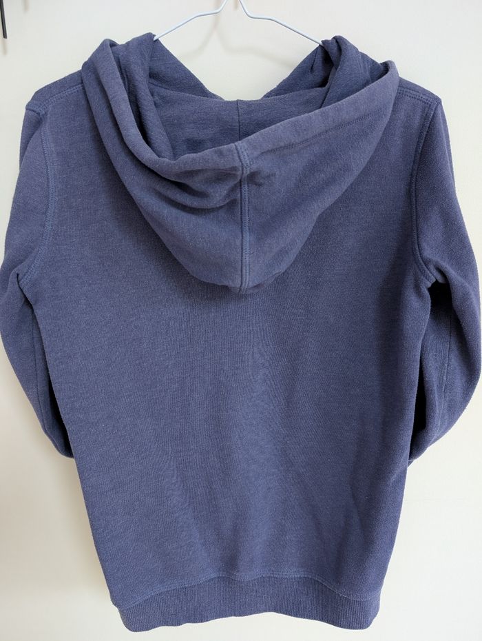 Sweat à capuche Fermeture éclair et poches Couleur entre violet et marine. Écriture rose et bleu ciel