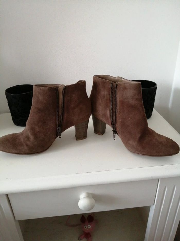 Bottines à talons Urban By Gemo Dessus cuire Portées quelques fois Le talon fait 6,5 cm Couleur taupe