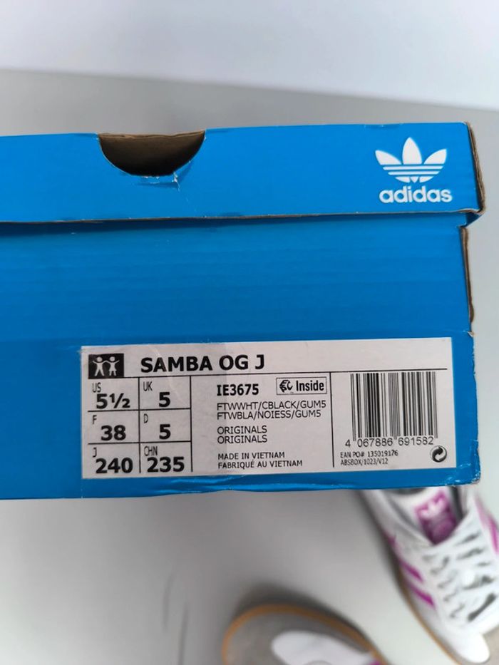 Baskets adidas samba blanche rose pointure 38 très bon état avec boîte - photo numéro 9
