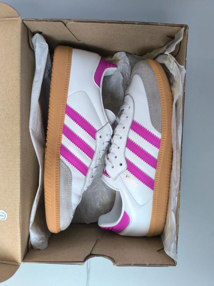 Baskets adidas samba blanche rose pointure 38 très bon état avec boîte - photo numéro 1