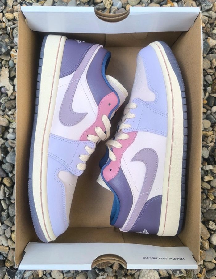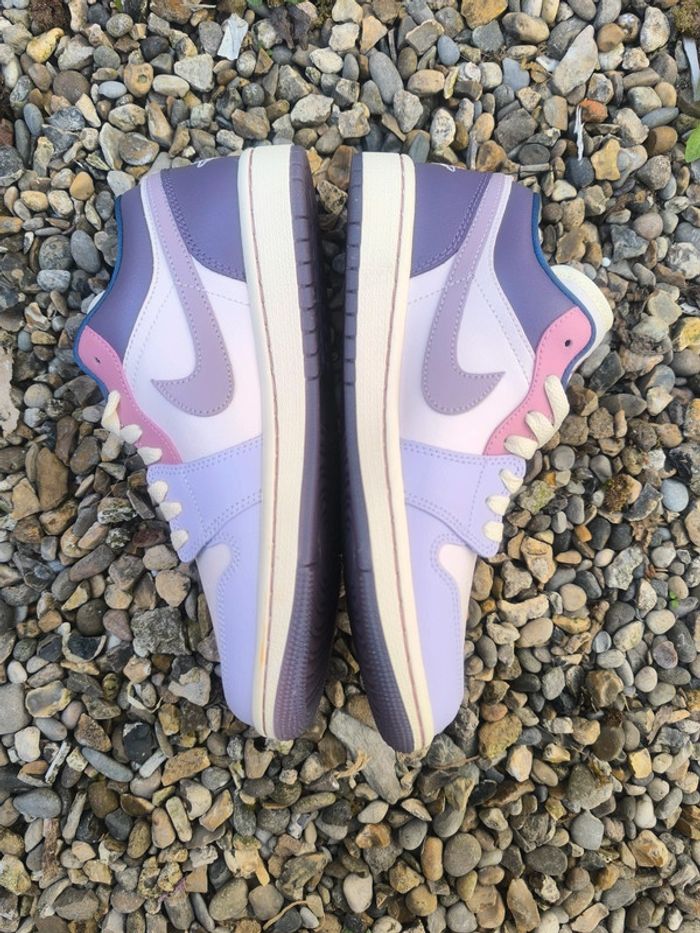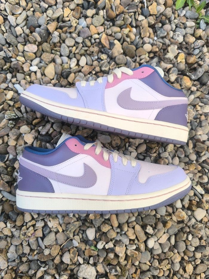 Magnifique baskets Jordan one low dans son coloris Violet Pastel 🪻👟. Pointure 40 📏, neuves jamais portées ni même essayer sans tâches ni défauts 💯. Colorés parfaites pour la saison prochaine 🌟. Conçu en cuir de très bonne qualité ✔️. Vendues dans la boîte d'origine mais sans couvercle ⚠️📦. N'hésitez pas à me contacter pour plus d'infos ☺️🗨️.