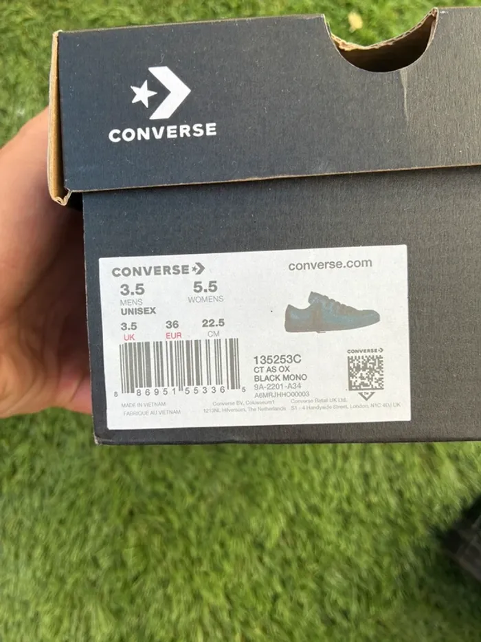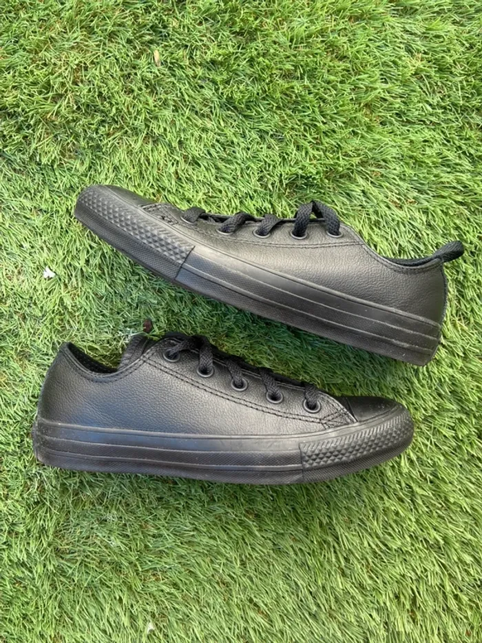 Baskets Converse basses en cuir noir 👟. Pointure 36 📏, jamais portées entièrement neuves donc sans taches ni défauts 💯. Vendues dans la boîte 📦 ! Passe partout et facile d’entretien parfait pour la saison prochaine 🍂. N’hésitez pas à me contacter pour plus d’infos 💬. #converse #basketsnoir #pointure36 #basketsfemme36 #sneakers