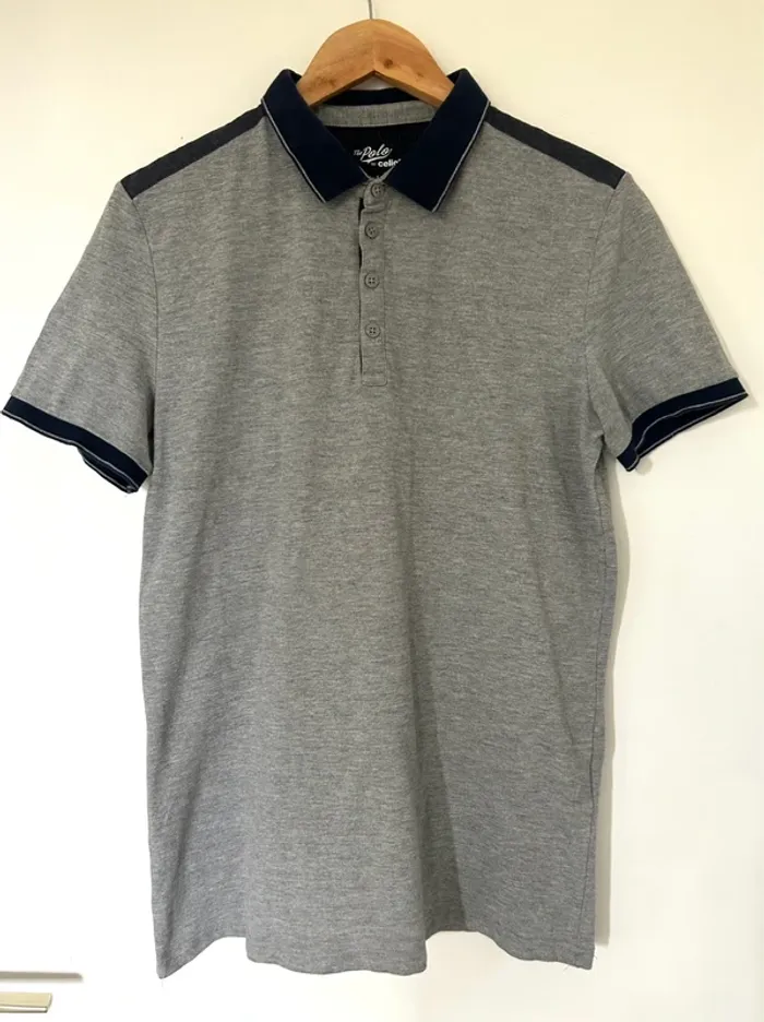 Polo gris clairs épaule jeans et col marine Taille L Excellent état