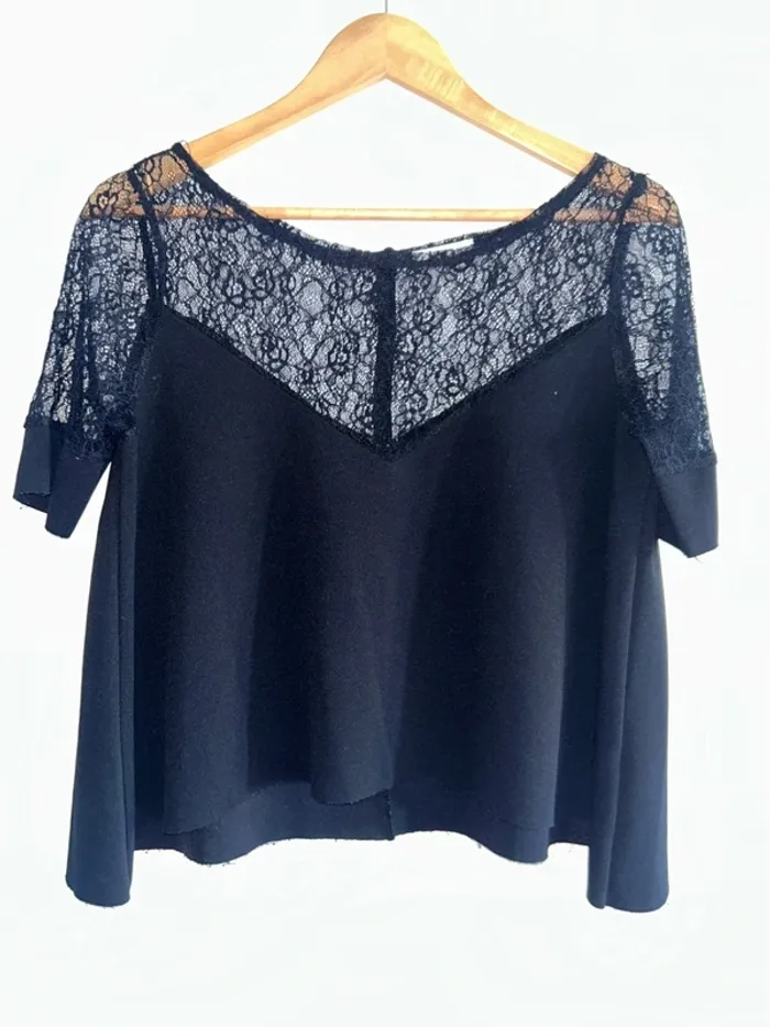 Top croc noir col dentelle Taille M Excellent état