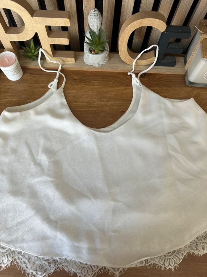 Débardeur Zara Petite dentelle dans le bas Grand 36 #femme #blanc #débardeur #débardeurlarge #meldressing7femme #meldressing7zara
