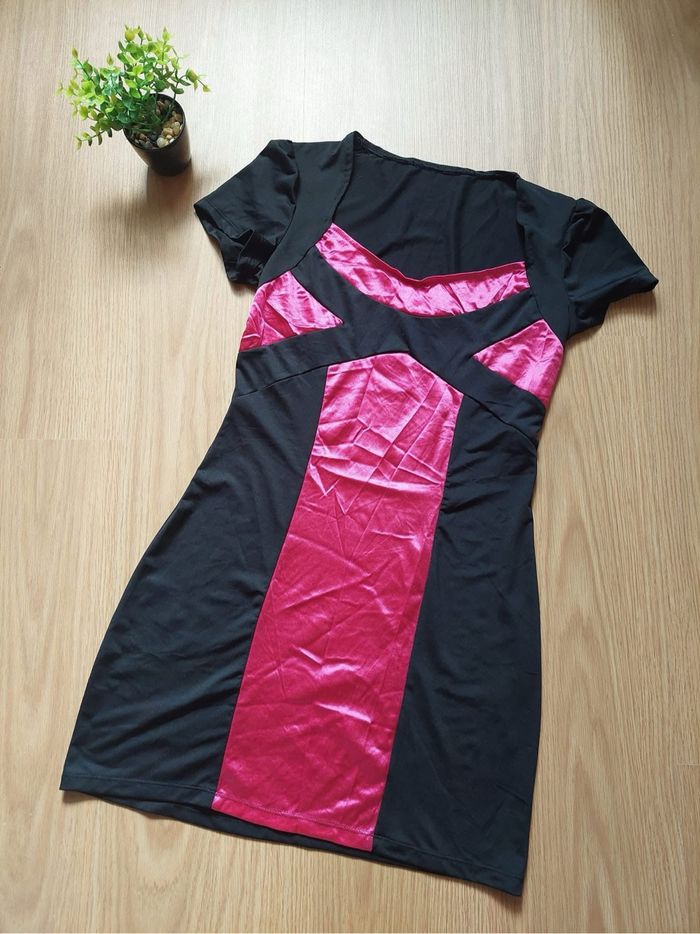 Robe sexy noire/rose fuschia T.U TBE 👗 - photo numéro 1