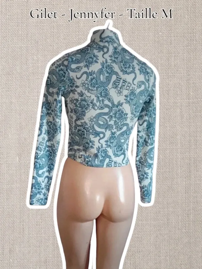 Gilet blanc Motif dragon 🐉 bleu - Taille M - Jennyfer - photo numéro 3