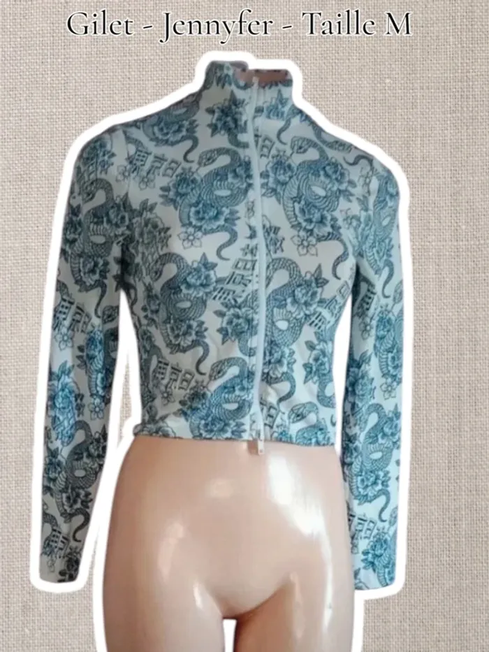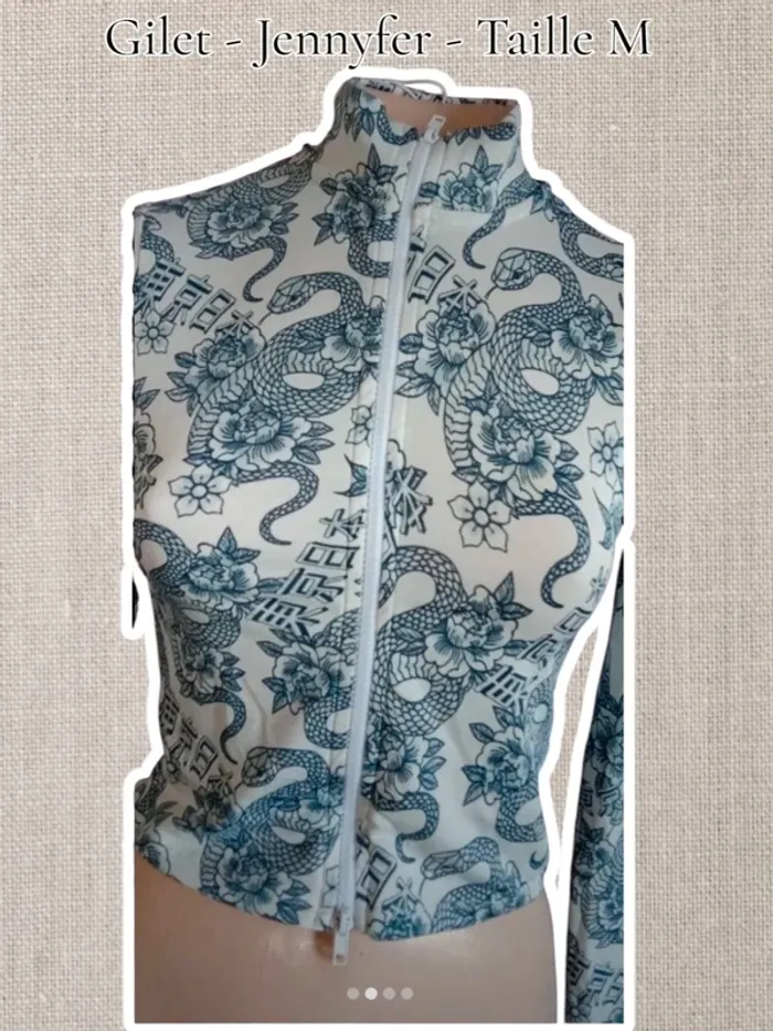 Gilet blanc Motif dragon 🐉 bleu - Taille M - Jennyfer - photo numéro 1