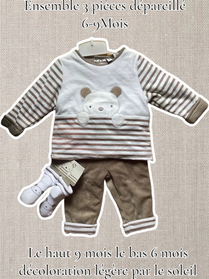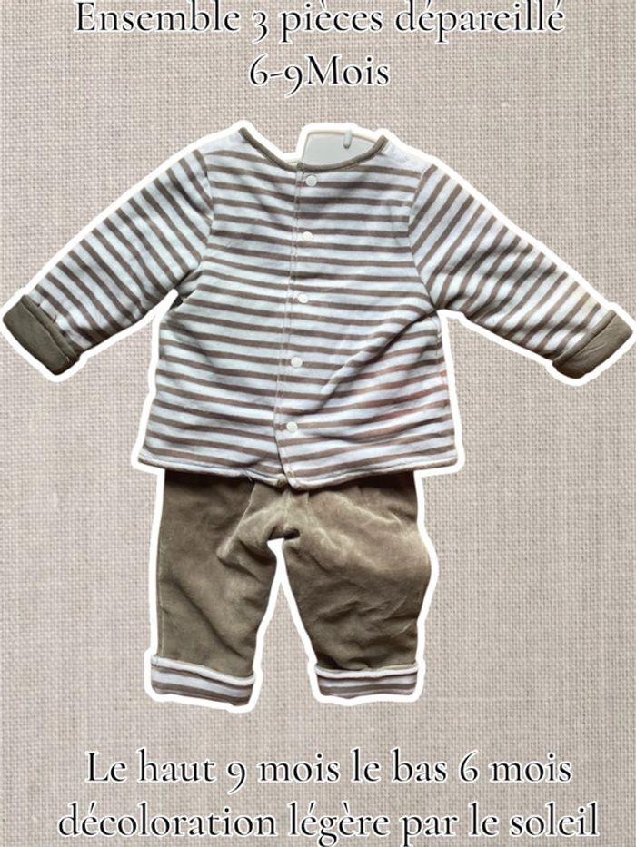 Ensemble 3 pièces dépareillé 6-9Mois -  décoloration légère par le soleil - photo numéro 1