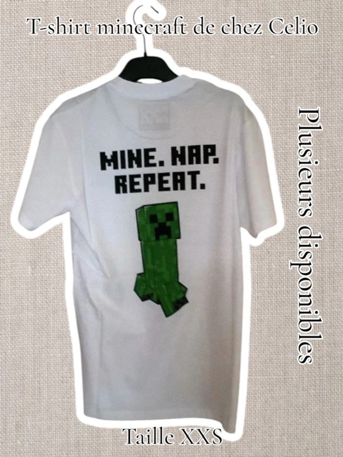 Prix sur étiquette 19.99 #HommeTailleXXS_Moi6667 #FemmeTailleXXS_Moi6667 #Taille32 #Enfants_Moi6667 #12Ans #14Ans #Minecraft #Celio #TailleXXS #Tshirt