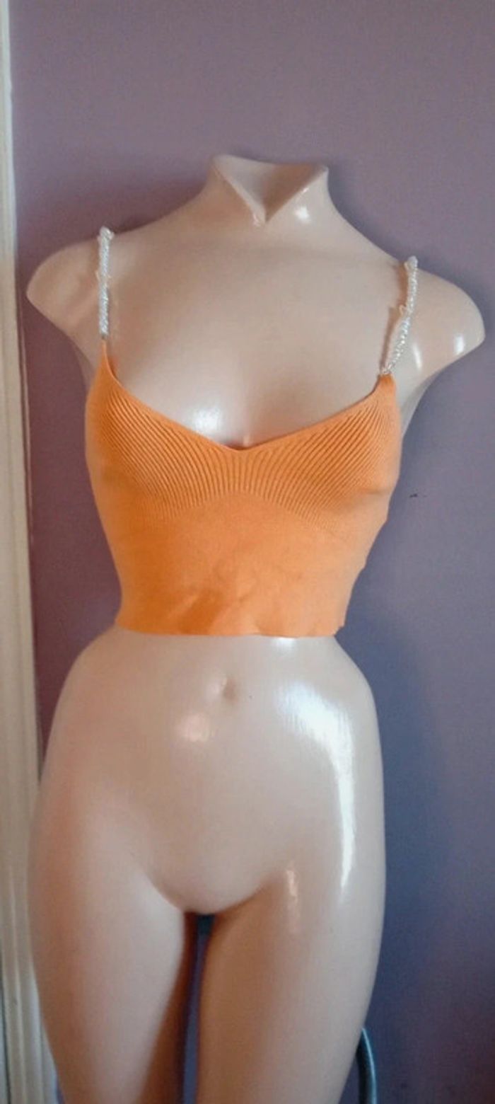 Crop top - Orange - Bretelles en perles avec papillon 🦋- FB - Taille S - photo numéro 1