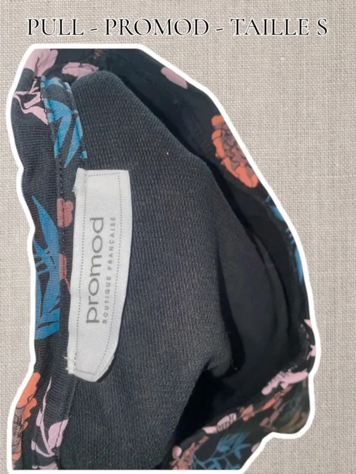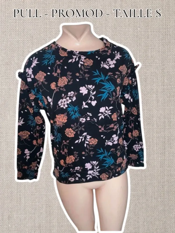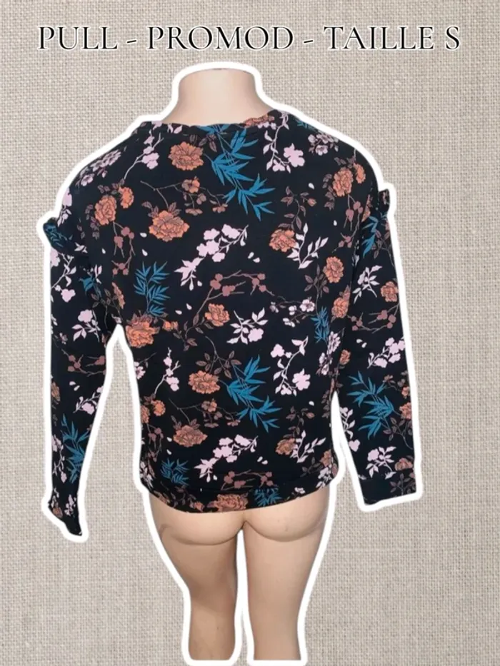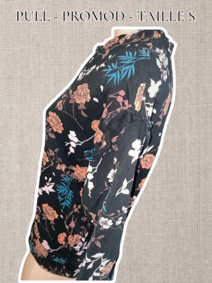 Pull 3/4 manches - Noir/Fleuris - Taille S - Promod