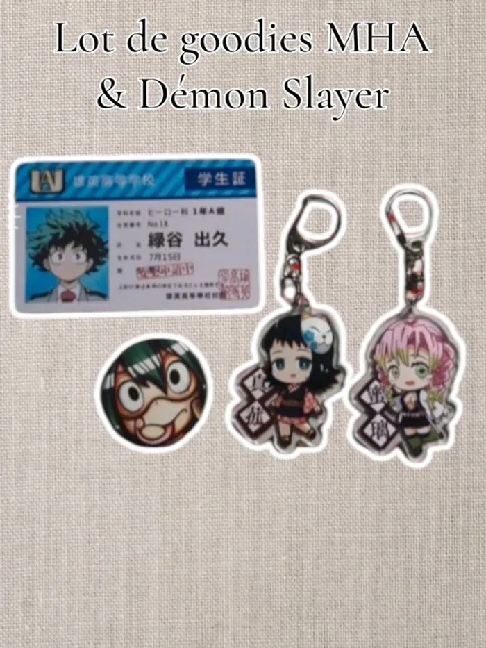 MHA (my hero academia) - carte UA d' Izuku - badge de Tsuyu DEMON SLAYER - porte clé acrylique Makomo - porte clé acrylique Mitsuri #Divers_Moi6667 #Goodies #DemonSlayer #MHA #Mangas #MyHeroAcademia