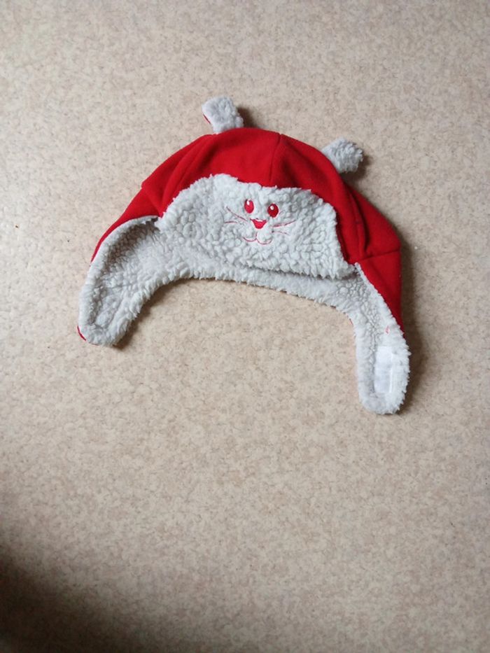 Bonnet rouge et blanc motif chat 🐱 - 49cm - photo numéro 1