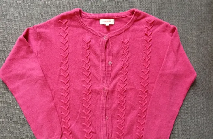 Gilet rose en tricot fin Porté et encore en bon état #petitenenette8ans + Autres ventes sur mon profil 🥳 Réduction sur lot 🛍️