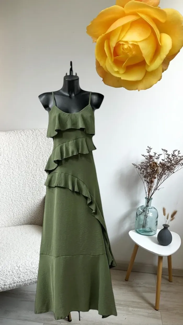 Très belle robe kaki bohème avec petit fente