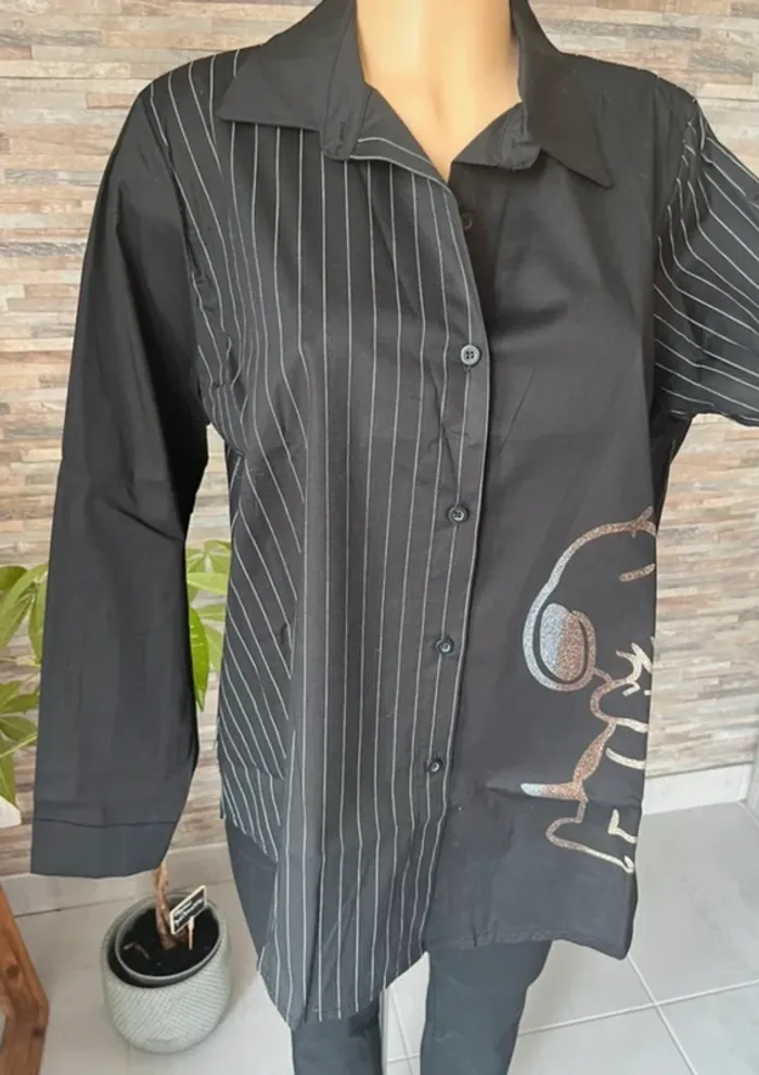 Chemise noire et snoopy pailleté - photo numéro 1