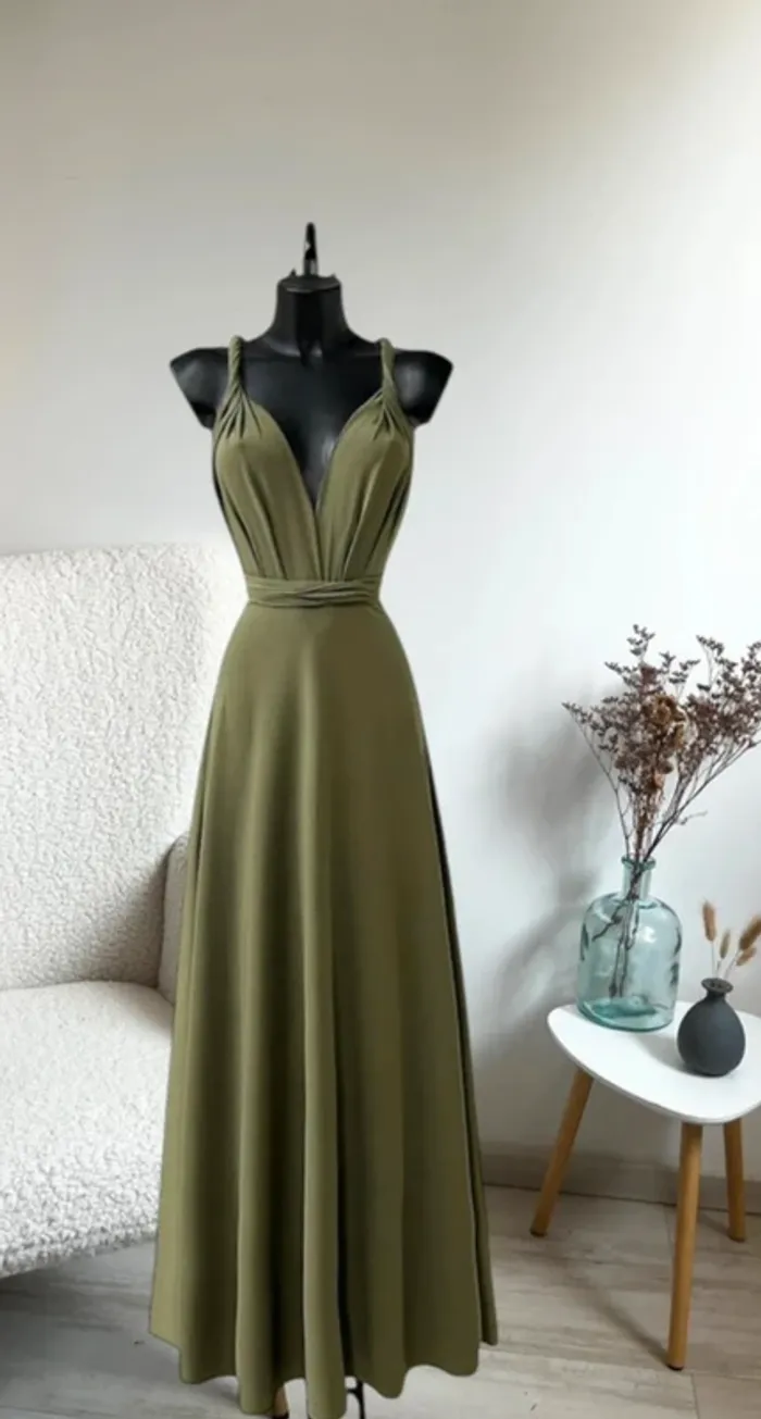 Robe couleur kaki plusieurs postions pour soirée