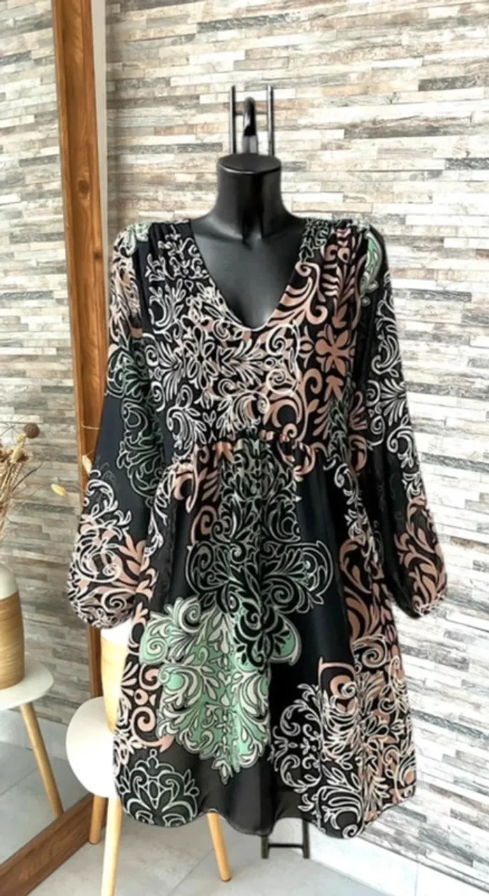 Taille unique 🌺N’hésitez pas à me contacter pour recevoir les mesures des articles, des photos supplémentaires, des conseils personnalisés, des conseils d’entretien afin de trouver la pièce qui vous conviendra parfaitement ! 🌺parfaite pour la saison, à porter aussi bien en journée que lors de vos événements : mariage, baptême, cérémonie, soirée, gala, anniversaire, cocktail, ou tout simplement pour un style chic et décontracté. 🌺Retrouvez un large choix de vêtements femme : sac banane, pantalon, pull en laine, mohair, chemise, chemisier, blouse, tunique, t-shirt, jupe longue, jupe plissée, combinaison multi positions, Combi short et robe, conçus pour s’adapter à toutes les silhouettes, robe longue, robe courte, robe d’été, robe plissée 🌺Mes pièces, sélectionnées avec soin, sont fabriquées majoritairement en Italie, alliant confort, belle finition et qualité. 🌺Vous découvrirez des vêtements disponibles dans de nombreuses couleurs tendances : noir, bleu, terracotta, vert d’eau, bleu pétrole, rose, bleu nuit, bleu roi, bleu canard, bleu marine, corail, violet, lila, aubergine, vert sauge, vert menthe, kaki, rouge, doré ainsi que des imprimés floraux ou des unis élégants. 🌺Si vous recherchez une robe longue, courte, midi, maxi, mini, plissée, ou d’un pantalon fluide ou d’un t-shirt basique, j’ai ce qu’il vous faut ! il en a pour toutes vos envies ! Les chemises sont majoritairement en coton, viscose ou polyester, dentelle, broderie anglaise, col Mao, à volants, vous trouverez votre bonheur 🌺Mes styles variés (champêtre, liberty, bohème chic, fleuri, sophistiqué, minimaliste, pastel) répondront à tous les goûts et toutes les occasions. Les marques boutique parisienne, boutique italiana, New collection, New sensation font partie de mon dressing
