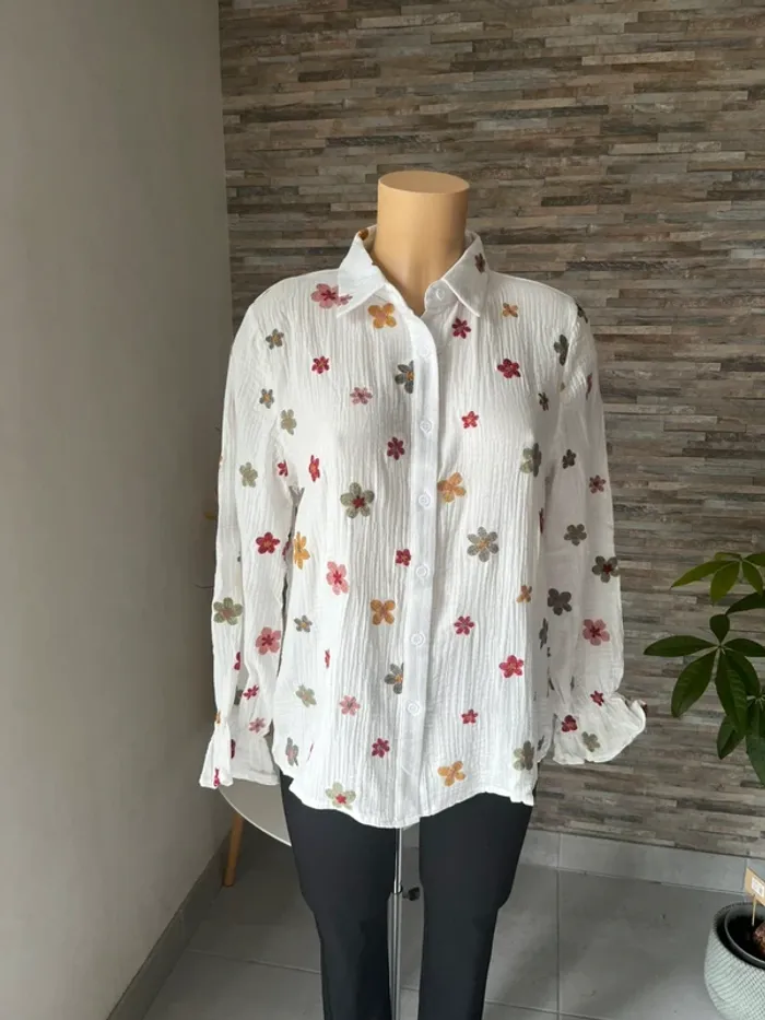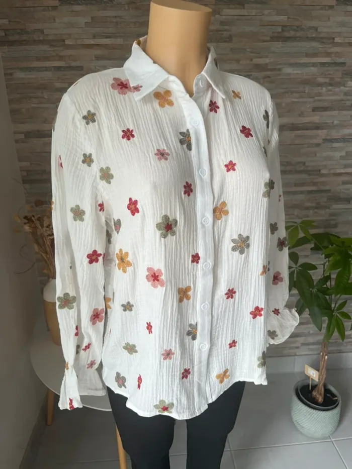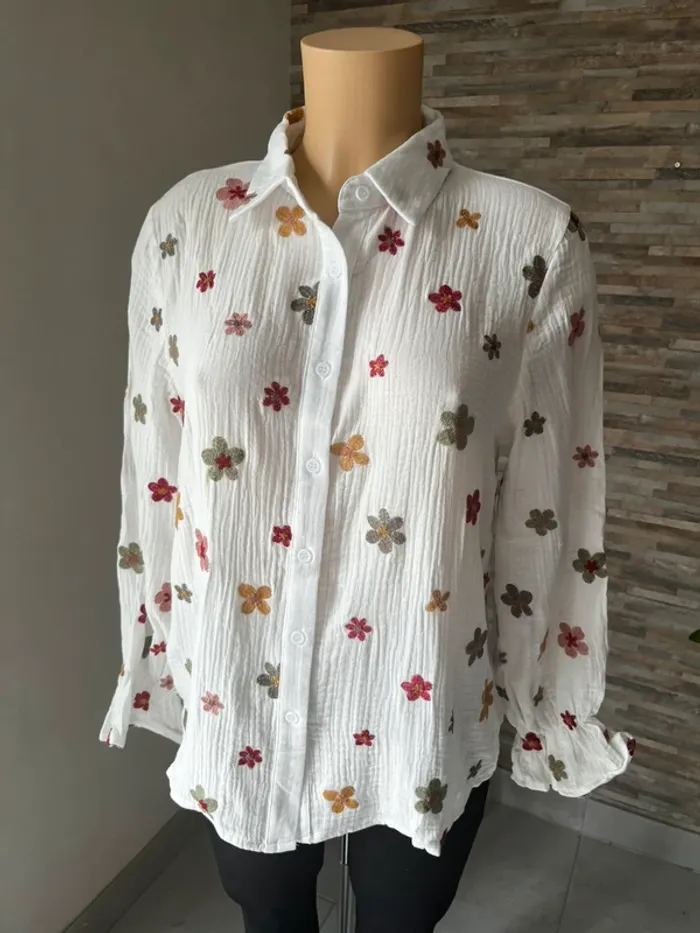 Chemises fleurs brodées 100% coton - photo numéro 1