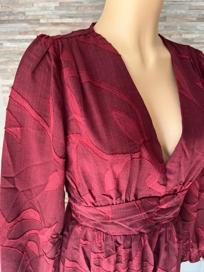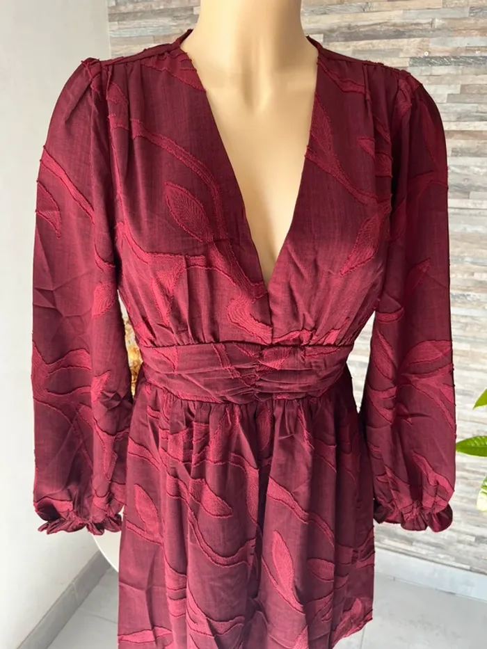 Taille ML 🌺N’hésitez pas à me contacter pour recevoir les mesures des articles, des photos supplémentaires, des conseils personnalisés, des conseils d’entretien afin de trouver la pièce qui vous conviendra parfaitement ! 🌺parfaite pour la saison, à porter aussi bien en journée que lors de vos événements : mariage, baptême, cérémonie, soirée, gala, anniversaire, cocktail, ou tout simplement pour un style chic et décontracté. 🌺Retrouvez un large choix de vêtements femme : sac banane, pantalon, pull en laine, mohair, chemise, chemisier, blouse, tunique, t-shirt, jupe longue, jupe plissée, combinaison multi positions, Combi short et robe, conçus pour s’adapter à toutes les silhouettes, robe longue, robe courte, robe d’été, robe plissée 🌺Mes pièces, sélectionnées avec soin, sont fabriquées majoritairement en Italie, alliant confort, belle finition et qualité. 🌺Vous découvrirez des vêtements disponibles dans de nombreuses couleurs tendances : noir, bleu, terracotta, vert d’eau, bleu pétrole, rose, bleu nuit, bleu roi, bleu canard, bleu marine, corail, violet, lila, aubergine, vert sauge, vert menthe, kaki, rouge, doré ainsi que des imprimés floraux ou des unis élégants. 🌺Si vous recherchez une robe longue, courte, midi, maxi, mini, plissée, ou d’un pantalon fluide ou d’un t-shirt basique, j’ai ce qu’il vous faut ! il en a pour toutes vos envies ! Les chemises sont majoritairement en coton, viscose ou polyester, dentelle, broderie anglaise, col Mao, à volants, vous trouverez votre bonheur 🌺Mes styles variés (champêtre, liberty, bohème chic, fleuri, sophistiqué, minimaliste, pastel) répondront à tous les goûts et toutes les occasions. Les marques boutique parisienne, boutique italiana, New collection, New sensation font partie de mon dressing