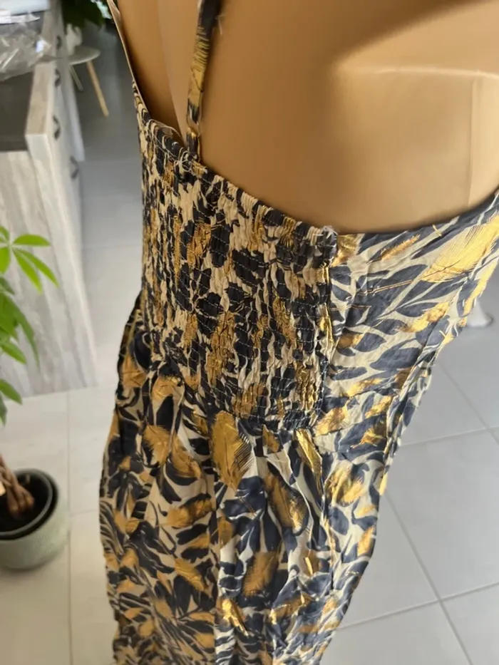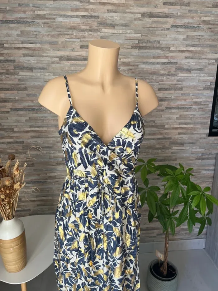 Taille L/XL 🌺N’hésitez pas à me contacter pour recevoir les mesures des articles, des photos supplémentaires, des conseils personnalisés, des conseils d’entretien afin de trouver la pièce qui vous conviendra parfaitement ! 🌺parfaite pour la saison, à porter aussi bien en journée que lors de vos événements : mariage, baptême, cérémonie, soirée, gala, anniversaire, cocktail, ou tout simplement pour un style chic et décontracté. 🌺Retrouvez un large choix de vêtements femme : sac banane, pantalon, pull en laine, mohair, chemise, chemisier, blouse, tunique, t-shirt, jupe longue, jupe plissée, combinaison multi positions, Combi short et robe, conçus pour s’adapter à toutes les silhouettes, robe longue, robe courte, robe d’été, robe plissée 🌺Mes pièces, sélectionnées avec soin, sont fabriquées majoritairement en Italie, alliant confort, belle finition et qualité. 🌺Vous découvrirez des vêtements disponibles dans de nombreuses couleurs tendances : noir, bleu, terracotta, vert d’eau, bleu pétrole, rose, bleu nuit, bleu roi, bleu canard, bleu marine, corail, violet, lila, aubergine, vert sauge, vert menthe, kaki, rouge, doré ainsi que des imprimés floraux ou des unis élégants. 🌺Si vous recherchez une robe longue, courte, midi, maxi, mini, plissée, ou d’un pantalon fluide ou d’un t-shirt basique, j’ai ce qu’il vous faut ! il en a pour toutes vos envies ! Les chemises sont majoritairement en coton, viscose ou polyester, dentelle, broderie anglaise, col Mao, à volants, vous trouverez votre bonheur 🌺Mes styles variés (champêtre, liberty, bohème chic, fleuri, sophistiqué, minimaliste, pastel) répondront à tous les goûts et toutes les occasions. Les marques boutique parisienne, boutique italiana, New collection, New sensation font partie de mon dressing