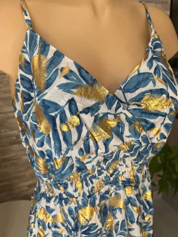 Taille L/XL 🌺N’hésitez pas à me contacter pour recevoir les mesures des articles, des photos supplémentaires, des conseils personnalisés, des conseils d’entretien afin de trouver la pièce qui vous conviendra parfaitement ! 🌺parfaite pour la saison, à porter aussi bien en journée que lors de vos événements : mariage, baptême, cérémonie, soirée, gala, anniversaire, cocktail, ou tout simplement pour un style chic et décontracté. 🌺Retrouvez un large choix de vêtements femme : sac banane, pantalon, pull en laine, mohair, chemise, chemisier, blouse, tunique, t-shirt, jupe longue, jupe plissée, combinaison multi positions, Combi short et robe, conçus pour s’adapter à toutes les silhouettes, robe longue, robe courte, robe d’été, robe plissée 🌺Mes pièces, sélectionnées avec soin, sont fabriquées majoritairement en Italie, alliant confort, belle finition et qualité. 🌺Vous découvrirez des vêtements disponibles dans de nombreuses couleurs tendances : noir, bleu, terracotta, vert d’eau, bleu pétrole, rose, bleu nuit, bleu roi, bleu canard, bleu marine, corail, violet, lila, aubergine, vert sauge, vert menthe, kaki, rouge, doré ainsi que des imprimés floraux ou des unis élégants. 🌺Si vous recherchez une robe longue, courte, midi, maxi, mini, plissée, ou d’un pantalon fluide ou d’un t-shirt basique, j’ai ce qu’il vous faut ! il en a pour toutes vos envies ! Les chemises sont majoritairement en coton, viscose ou polyester, dentelle, broderie anglaise, col Mao, à volants, vous trouverez votre bonheur 🌺Mes styles variés (champêtre, liberty, bohème chic, fleuri, sophistiqué, minimaliste, pastel) répondront à tous les goûts et toutes les occasions. Les marques boutique parisienne, boutique italiana, New collection, New sensation font partie de mon dressing