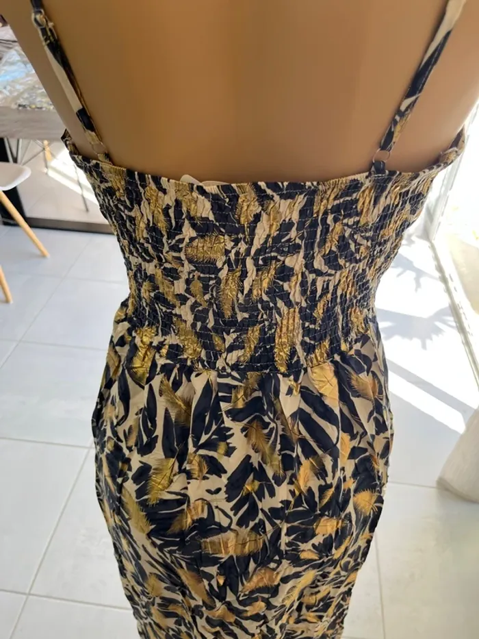 Taille L/XL 🌺N’hésitez pas à me contacter pour recevoir les mesures des articles, des photos supplémentaires, des conseils personnalisés, des conseils d’entretien afin de trouver la pièce qui vous conviendra parfaitement ! 🌺parfaite pour la saison, à porter aussi bien en journée que lors de vos événements : mariage, baptême, cérémonie, soirée, gala, anniversaire, cocktail, ou tout simplement pour un style chic et décontracté. 🌺Retrouvez un large choix de vêtements femme : sac banane, pantalon, pull en laine, mohair, chemise, chemisier, blouse, tunique, t-shirt, jupe longue, jupe plissée, combinaison multi positions, Combi short et robe, conçus pour s’adapter à toutes les silhouettes, robe longue, robe courte, robe d’été, robe plissée 🌺Mes pièces, sélectionnées avec soin, sont fabriquées majoritairement en Italie, alliant confort, belle finition et qualité. 🌺Vous découvrirez des vêtements disponibles dans de nombreuses couleurs tendances : noir, bleu, terracotta, vert d’eau, bleu pétrole, rose, bleu nuit, bleu roi, bleu canard, bleu marine, corail, violet, lila, aubergine, vert sauge, vert menthe, kaki, rouge, doré ainsi que des imprimés floraux ou des unis élégants. 🌺Si vous recherchez une robe longue, courte, midi, maxi, mini, plissée, ou d’un pantalon fluide ou d’un t-shirt basique, j’ai ce qu’il vous faut ! il en a pour toutes vos envies ! Les chemises sont majoritairement en coton, viscose ou polyester, dentelle, broderie anglaise, col Mao, à volants, vous trouverez votre bonheur 🌺Mes styles variés (champêtre, liberty, bohème chic, fleuri, sophistiqué, minimaliste, pastel) répondront à tous les goûts et toutes les occasions. Les marques boutique parisienne, boutique italiana, New collection, New sensation font partie de mon dressing