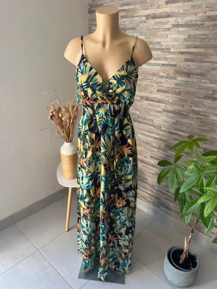 Taille L/XL 🌺N’hésitez pas à me contacter pour recevoir les mesures des articles, des photos supplémentaires, des conseils personnalisés, des conseils d’entretien afin de trouver la pièce qui vous conviendra parfaitement ! 🌺parfaite pour la saison, à porter aussi bien en journée que lors de vos événements : mariage, baptême, cérémonie, soirée, gala, anniversaire, cocktail, ou tout simplement pour un style chic et décontracté. 🌺Retrouvez un large choix de vêtements femme : sac banane, pantalon, pull en laine, mohair, chemise, chemisier, blouse, tunique, t-shirt, jupe longue, jupe plissée, combinaison multi positions, Combi short et robe, conçus pour s’adapter à toutes les silhouettes, robe longue, robe courte, robe d’été, robe plissée 🌺Mes pièces, sélectionnées avec soin, sont fabriquées majoritairement en Italie, alliant confort, belle finition et qualité. 🌺Vous découvrirez des vêtements disponibles dans de nombreuses couleurs tendances : noir, bleu, terracotta, vert d’eau, bleu pétrole, rose, bleu nuit, bleu roi, bleu canard, bleu marine, corail, violet, lila, aubergine, vert sauge, vert menthe, kaki, rouge, doré ainsi que des imprimés floraux ou des unis élégants. 🌺Si vous recherchez une robe longue, courte, midi, maxi, mini, plissée, ou d’un pantalon fluide ou d’un t-shirt basique, j’ai ce qu’il vous faut ! il en a pour toutes vos envies ! Les chemises sont majoritairement en coton, viscose ou polyester, dentelle, broderie anglaise, col Mao, à volants, vous trouverez votre bonheur 🌺Mes styles variés (champêtre, liberty, bohème chic, fleuri, sophistiqué, minimaliste, pastel) répondront à tous les goûts et toutes les occasions. Les marques boutique parisienne, boutique italiana, New collection, New sensation font partie de mon dressing
