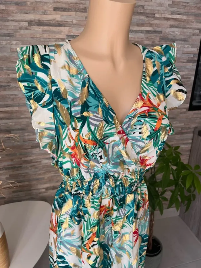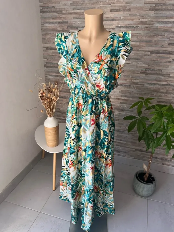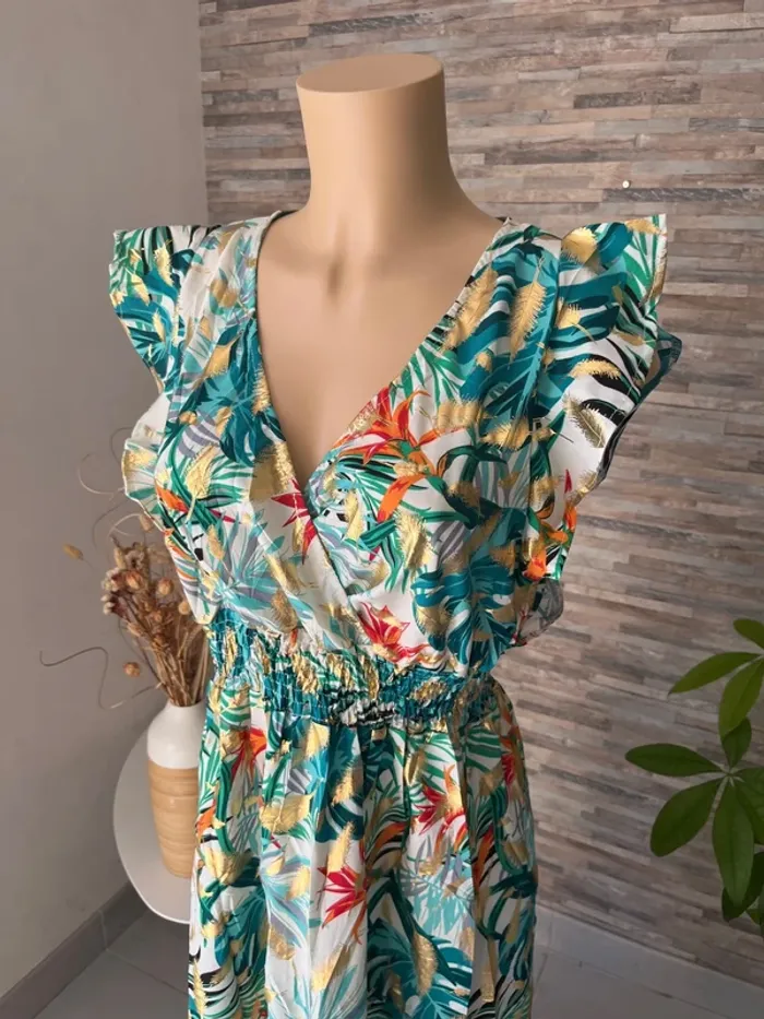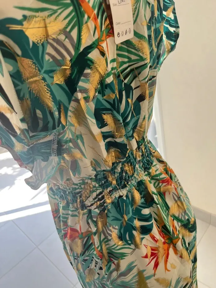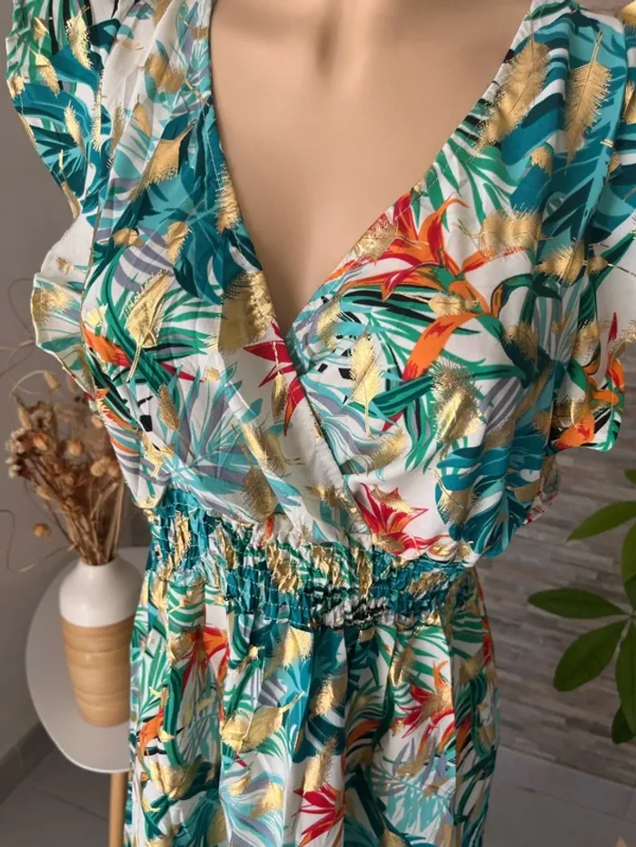 Taille L/XL 🌺N’hésitez pas à me contacter pour recevoir les mesures des articles, des photos supplémentaires, des conseils personnalisés, des conseils d’entretien afin de trouver la pièce qui vous conviendra parfaitement ! 🌺parfaite pour la saison, à porter aussi bien en journée que lors de vos événements : mariage, baptême, cérémonie, soirée, gala, anniversaire, cocktail, ou tout simplement pour un style chic et décontracté. 🌺Retrouvez un large choix de vêtements femme : sac banane, pantalon, pull en laine, mohair, chemise, chemisier, blouse, tunique, t-shirt, jupe longue, jupe plissée, combinaison multi positions, Combi short et robe, conçus pour s’adapter à toutes les silhouettes, robe longue, robe courte, robe d’été, robe plissée 🌺Mes pièces, sélectionnées avec soin, sont fabriquées majoritairement en Italie, alliant confort, belle finition et qualité. 🌺Vous découvrirez des vêtements disponibles dans de nombreuses couleurs tendances : noir, bleu, terracotta, vert d’eau, bleu pétrole, rose, bleu nuit, bleu roi, bleu canard, bleu marine, corail, violet, lila, aubergine, vert sauge, vert menthe, kaki, rouge, doré ainsi que des imprimés floraux ou des unis élégants. 🌺Si vous recherchez une robe longue, courte, midi, maxi, mini, plissée, ou d’un pantalon fluide ou d’un t-shirt basique, j’ai ce qu’il vous faut ! il en a pour toutes vos envies ! Les chemises sont majoritairement en coton, viscose ou polyester, dentelle, broderie anglaise, col Mao, à volants, vous trouverez votre bonheur 🌺Mes styles variés (champêtre, liberty, bohème chic, fleuri, sophistiqué, minimaliste, pastel) répondront à tous les goûts et toutes les occasions. Les marques boutique parisienne, boutique italiana, New collection, New sensation font partie de mon dressing