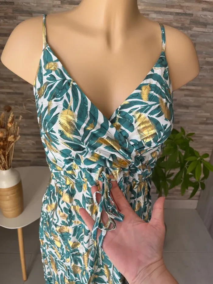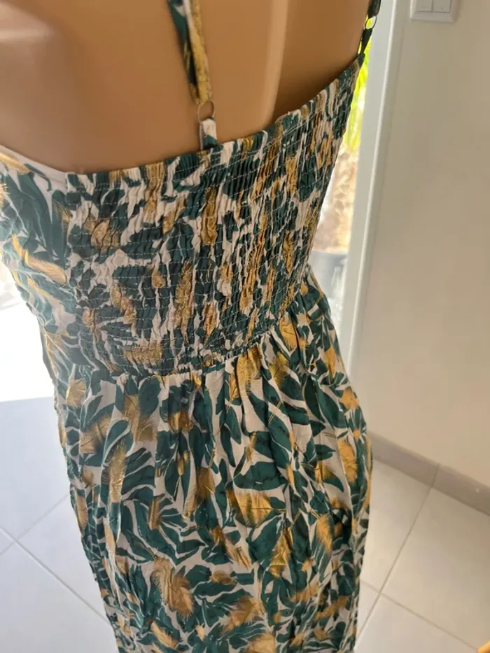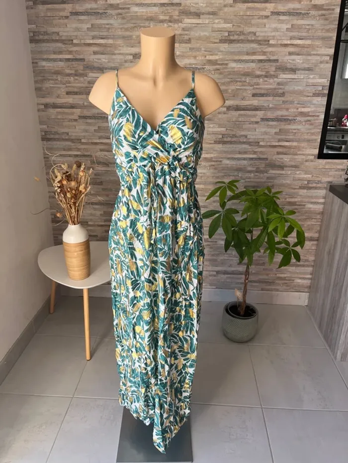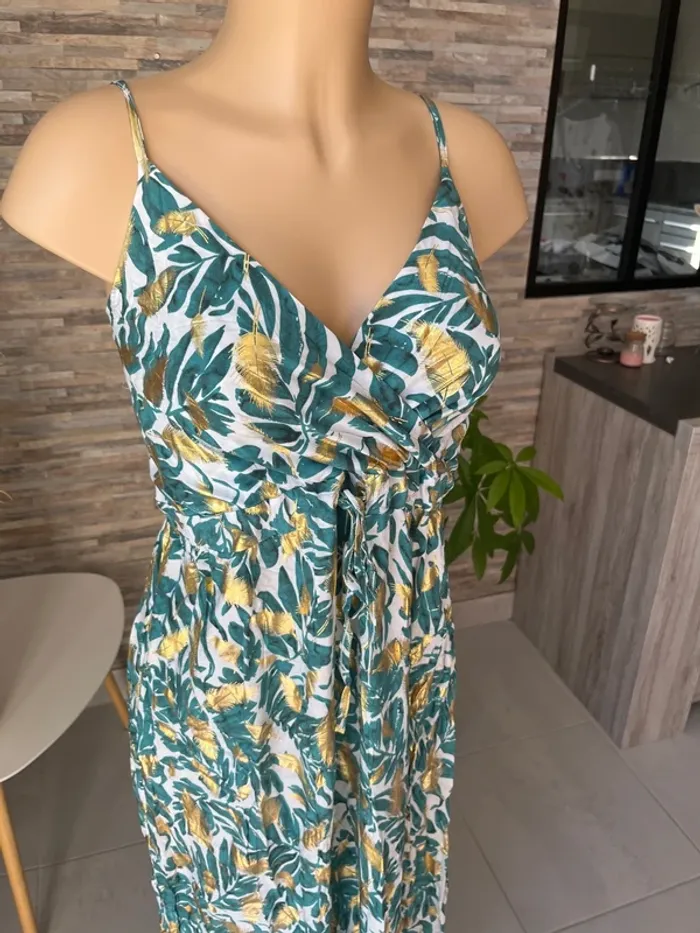 Taille S/M 🌺N’hésitez pas à me contacter pour recevoir les mesures des articles, des photos supplémentaires, des conseils personnalisés, des conseils d’entretien afin de trouver la pièce qui vous conviendra parfaitement ! 🌺parfaite pour la saison, à porter aussi bien en journée que lors de vos événements : mariage, baptême, cérémonie, soirée, gala, anniversaire, cocktail, ou tout simplement pour un style chic et décontracté. 🌺Retrouvez un large choix de vêtements femme : sac banane, pantalon, pull en laine, mohair, chemise, chemisier, blouse, tunique, t-shirt, jupe longue, jupe plissée, combinaison multi positions, Combi short et robe, conçus pour s’adapter à toutes les silhouettes, robe longue, robe courte, robe d’été, robe plissée 🌺Mes pièces, sélectionnées avec soin, sont fabriquées majoritairement en Italie, alliant confort, belle finition et qualité. 🌺Vous découvrirez des vêtements disponibles dans de nombreuses couleurs tendances : noir, bleu, terracotta, vert d’eau, bleu pétrole, rose, bleu nuit, bleu roi, bleu canard, bleu marine, corail, violet, lila, aubergine, vert sauge, vert menthe, kaki, rouge, doré ainsi que des imprimés floraux ou des unis élégants. 🌺Si vous recherchez une robe longue, courte, midi, maxi, mini, plissée, ou d’un pantalon fluide ou d’un t-shirt basique, j’ai ce qu’il vous faut ! il en a pour toutes vos envies ! Les chemises sont majoritairement en coton, viscose ou polyester, dentelle, broderie anglaise, col Mao, à volants, vous trouverez votre bonheur 🌺Mes styles variés (champêtre, liberty, bohème chic, fleuri, sophistiqué, minimaliste, pastel) répondront à tous les goûts et toutes les occasions. Les marques boutique parisienne, boutique italiana, New collection, New sensation font partie de mon dressing
