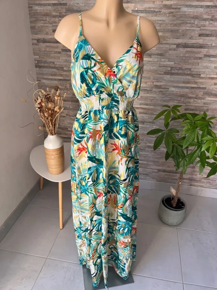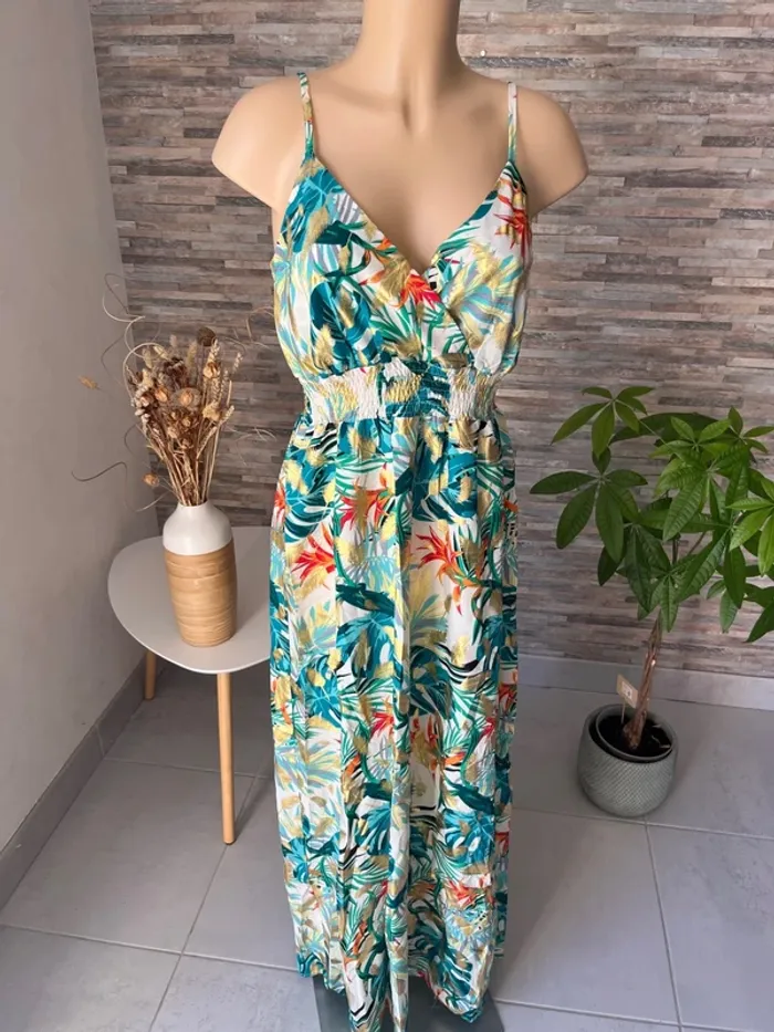 Taille S/M 🌺N’hésitez pas à me contacter pour recevoir les mesures des articles, des photos supplémentaires, des conseils personnalisés, des conseils d’entretien afin de trouver la pièce qui vous conviendra parfaitement ! 🌺parfaite pour la saison, à porter aussi bien en journée que lors de vos événements : mariage, baptême, cérémonie, soirée, gala, anniversaire, cocktail, ou tout simplement pour un style chic et décontracté. 🌺Retrouvez un large choix de vêtements femme : sac banane, pantalon, pull en laine, mohair, chemise, chemisier, blouse, tunique, t-shirt, jupe longue, jupe plissée, combinaison multi positions, Combi short et robe, conçus pour s’adapter à toutes les silhouettes, robe longue, robe courte, robe d’été, robe plissée 🌺Mes pièces, sélectionnées avec soin, sont fabriquées majoritairement en Italie, alliant confort, belle finition et qualité. 🌺Vous découvrirez des vêtements disponibles dans de nombreuses couleurs tendances : noir, bleu, terracotta, vert d’eau, bleu pétrole, rose, bleu nuit, bleu roi, bleu canard, bleu marine, corail, violet, lila, aubergine, vert sauge, vert menthe, kaki, rouge, doré ainsi que des imprimés floraux ou des unis élégants. 🌺Si vous recherchez une robe longue, courte, midi, maxi, mini, plissée, ou d’un pantalon fluide ou d’un t-shirt basique, j’ai ce qu’il vous faut ! il en a pour toutes vos envies ! Les chemises sont majoritairement en coton, viscose ou polyester, dentelle, broderie anglaise, col Mao, à volants, vous trouverez votre bonheur 🌺Mes styles variés (champêtre, liberty, bohème chic, fleuri, sophistiqué, minimaliste, pastel) répondront à tous les goûts et toutes les occasions. Les marques boutique parisienne, boutique italiana, New collection, New sensation font partie de mon dressing