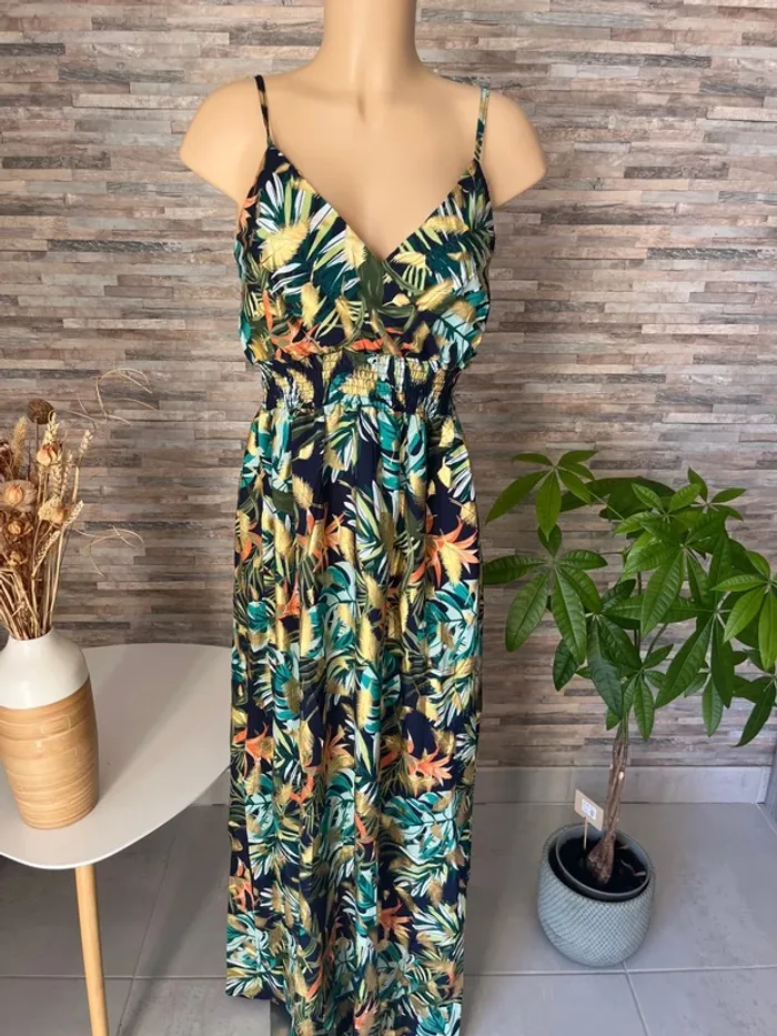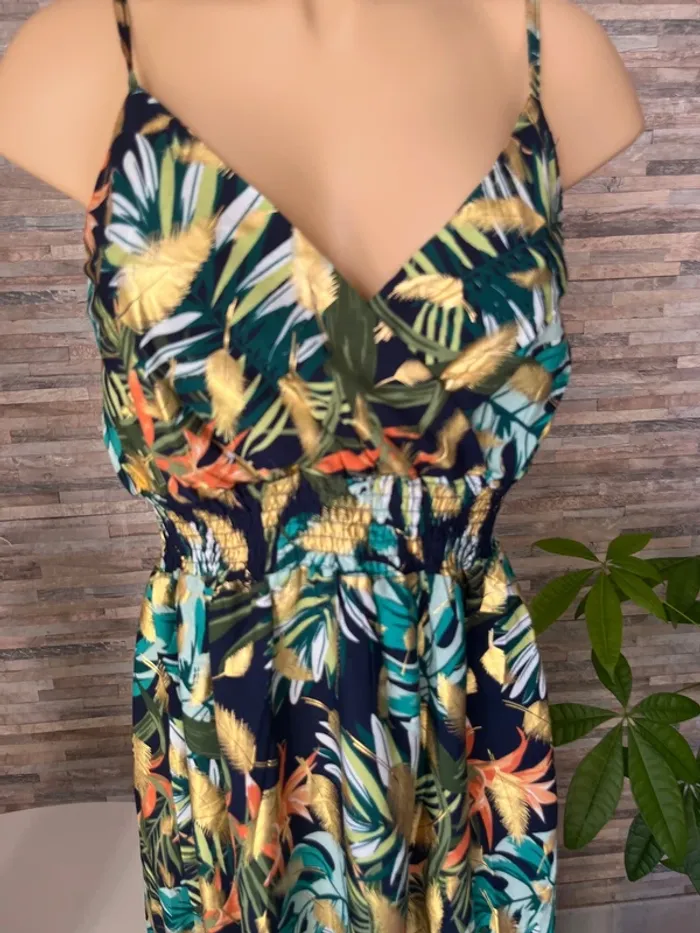 Taille S/M 🌺N’hésitez pas à me contacter pour recevoir les mesures des articles, des photos supplémentaires, des conseils personnalisés, des conseils d’entretien afin de trouver la pièce qui vous conviendra parfaitement ! 🌺parfaite pour la saison, à porter aussi bien en journée que lors de vos événements : mariage, baptême, cérémonie, soirée, gala, anniversaire, cocktail, ou tout simplement pour un style chic et décontracté. 🌺Retrouvez un large choix de vêtements femme : sac banane, pantalon, pull en laine, mohair, chemise, chemisier, blouse, tunique, t-shirt, jupe longue, jupe plissée, combinaison multi positions, Combi short et robe, conçus pour s’adapter à toutes les silhouettes, robe longue, robe courte, robe d’été, robe plissée 🌺Mes pièces, sélectionnées avec soin, sont fabriquées majoritairement en Italie, alliant confort, belle finition et qualité. 🌺Vous découvrirez des vêtements disponibles dans de nombreuses couleurs tendances : noir, bleu, terracotta, vert d’eau, bleu pétrole, rose, bleu nuit, bleu roi, bleu canard, bleu marine, corail, violet, lila, aubergine, vert sauge, vert menthe, kaki, rouge, doré ainsi que des imprimés floraux ou des unis élégants. 🌺Si vous recherchez une robe longue, courte, midi, maxi, mini, plissée, ou d’un pantalon fluide ou d’un t-shirt basique, j’ai ce qu’il vous faut ! il en a pour toutes vos envies ! Les chemises sont majoritairement en coton, viscose ou polyester, dentelle, broderie anglaise, col Mao, à volants, vous trouverez votre bonheur 🌺Mes styles variés (champêtre, liberty, bohème chic, fleuri, sophistiqué, minimaliste, pastel) répondront à tous les goûts et toutes les occasions. Les marques boutique parisienne, boutique italiana, New collection, New sensation font partie de mon dressing