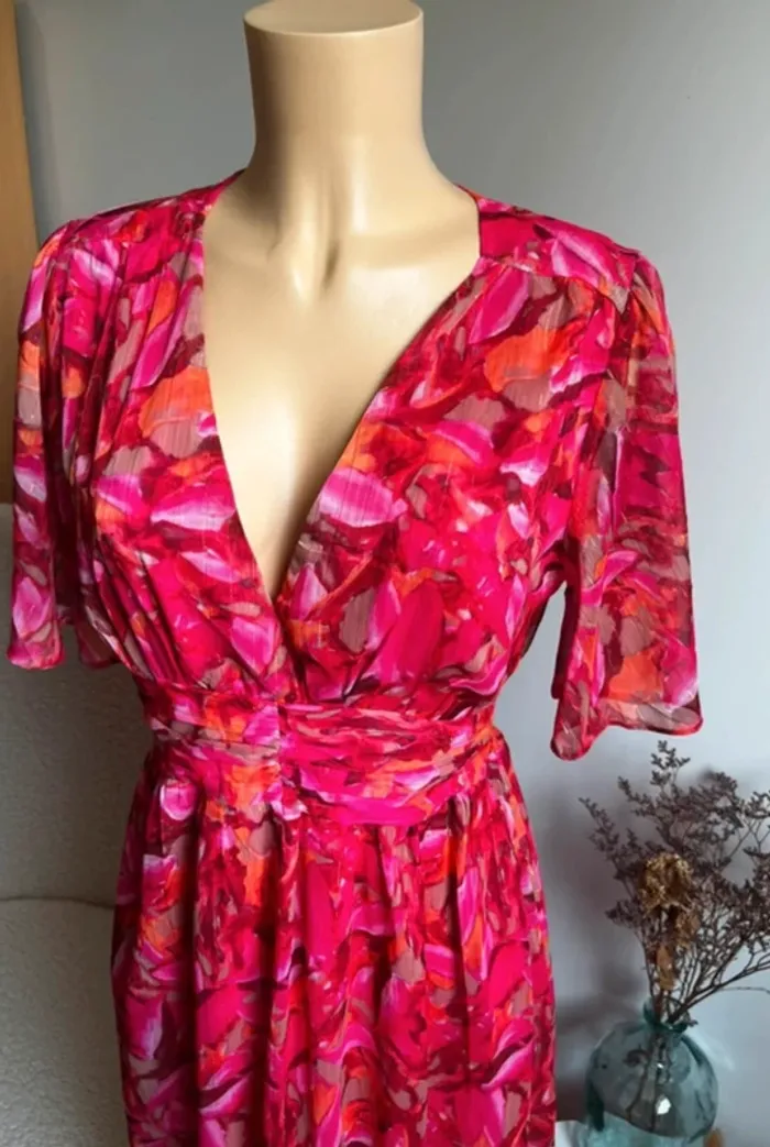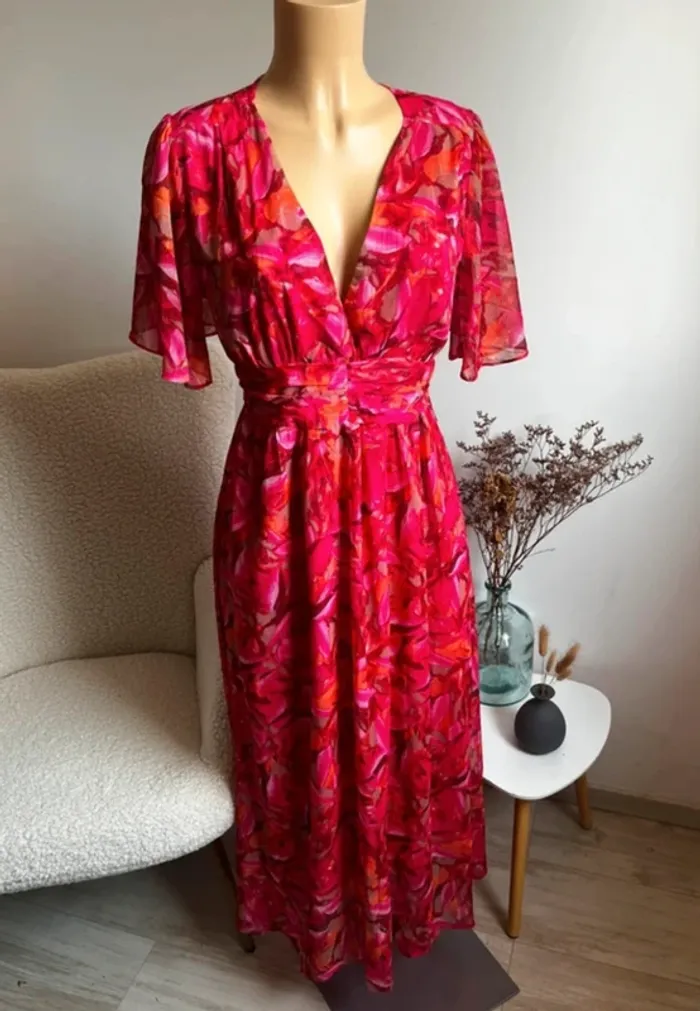 Taille S/M 🌺N’hésitez pas à me contacter pour recevoir les mesures des articles, des photos supplémentaires, des conseils personnalisés, des conseils d’entretien afin de trouver la pièce qui vous conviendra parfaitement ! 🌺parfaite pour la saison, à porter aussi bien en journée que lors de vos événements : mariage, baptême, cérémonie, soirée, gala, anniversaire, cocktail, ou tout simplement pour un style chic et décontracté. 🌺Retrouvez un large choix de vêtements femme : sac banane, pantalon, pull en laine, mohair, chemise, chemisier, blouse, tunique, t-shirt, jupe longue, jupe plissée, combinaison multi positions, Combi short et robe, conçus pour s’adapter à toutes les silhouettes, robe longue, robe courte, robe d’été, robe plissée 🌺Mes pièces, sélectionnées avec soin, sont fabriquées majoritairement en Italie, alliant confort, belle finition et qualité. 🌺Vous découvrirez des vêtements disponibles dans de nombreuses couleurs tendances : noir, bleu, terracotta, vert d’eau, bleu pétrole, rose, bleu nuit, bleu roi, bleu canard, bleu marine, corail, violet, lila, aubergine, vert sauge, vert menthe, kaki, rouge, doré ainsi que des imprimés floraux ou des unis élégants. 🌺Si vous recherchez une robe longue, courte, midi, maxi, mini, plissée, ou d’un pantalon fluide ou d’un t-shirt basique, j’ai ce qu’il vous faut ! il en a pour toutes vos envies ! Les chemises sont majoritairement en coton, viscose ou polyester, dentelle, broderie anglaise, col Mao, à volants, vous trouverez votre bonheur 🌺Mes styles variés (champêtre, liberty, bohème chic, fleuri, sophistiqué, minimaliste, pastel) répondront à tous les goûts et toutes les occasions. Les marques boutique parisienne, boutique italiana, New collection, New sensation font partie de mon dressing