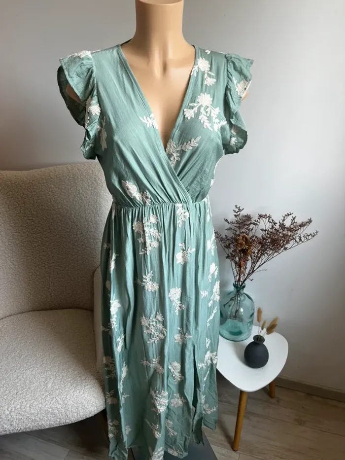 Robe longue taille M/L vert sauge turquoise - photo numéro 2