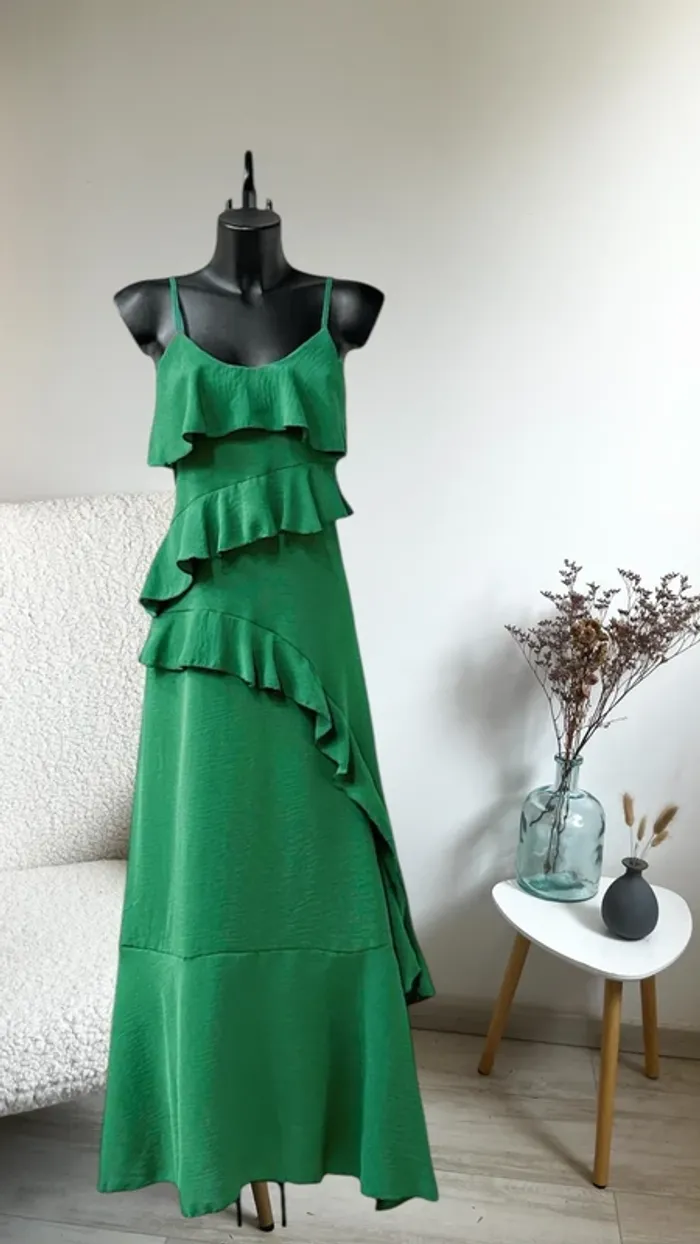 Robe longue vert sapin avec fente taille unique