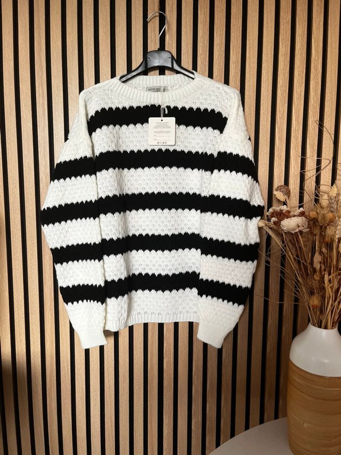 Pull noir et blanc cassé à rayures - photo numéro 1