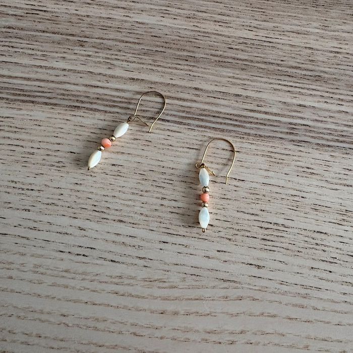 Boucles d’oreilles • Couleur blanc & abricot • En superbe état #bouclesdoreilles #bouclesdoreillesblanches #camillel2_bouclesdoreilles