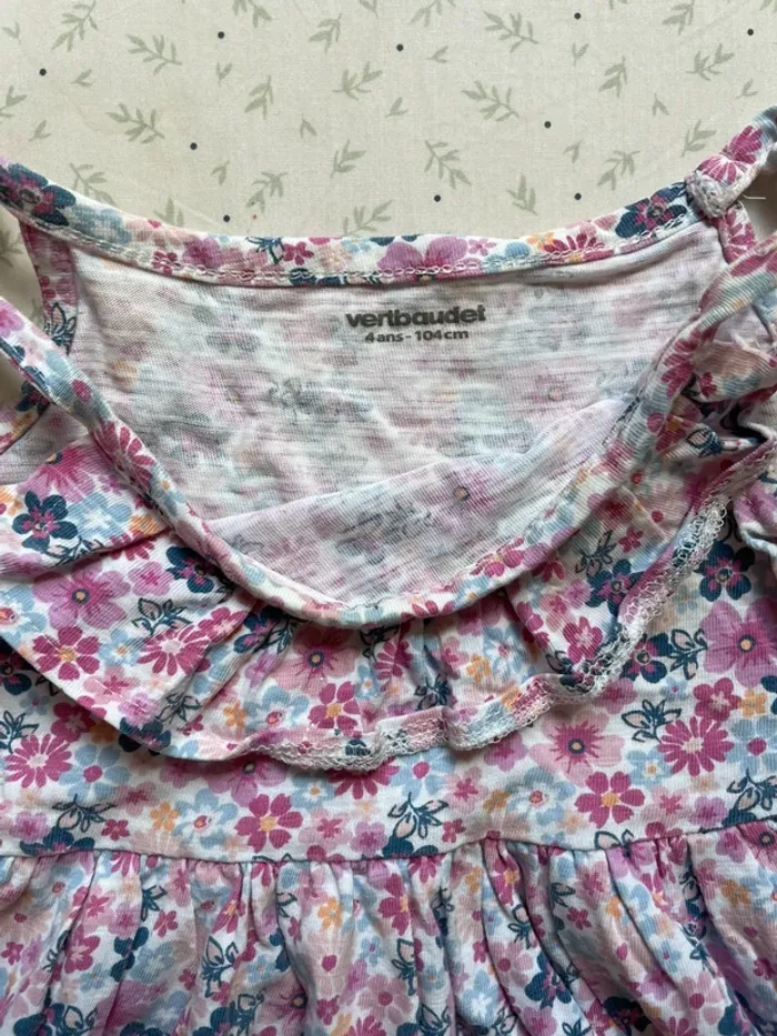 Robe bretelle rose à fleurs Vertbaudet 4 ans - photo numéro 1