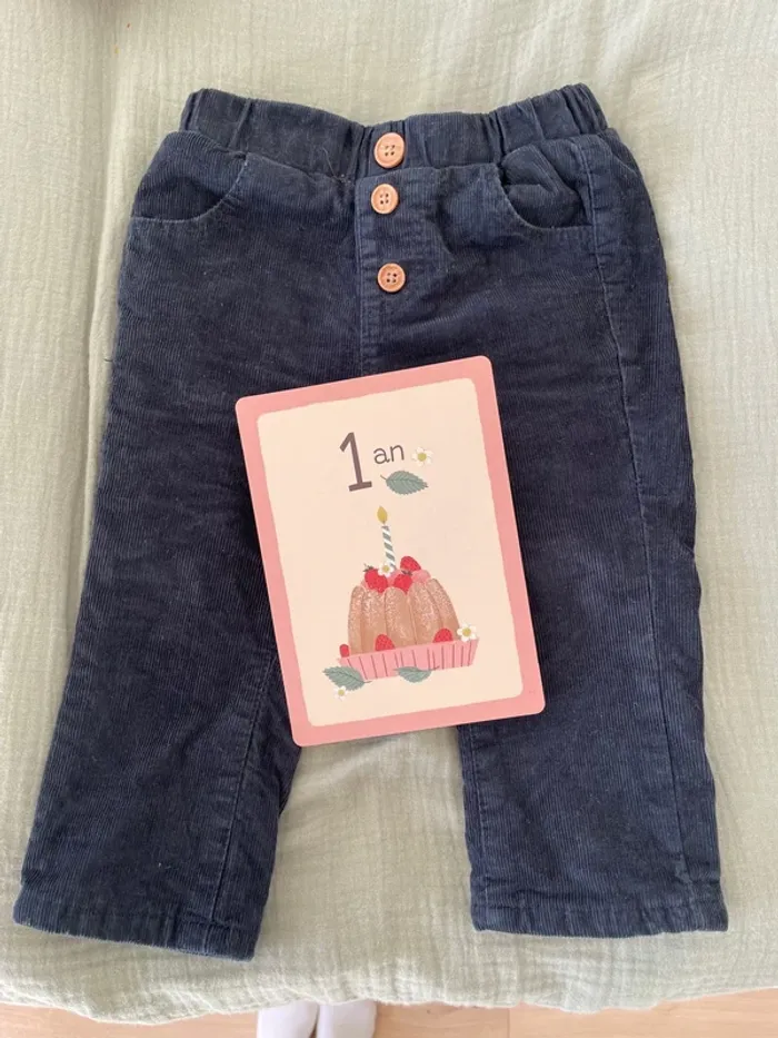 Pantalon velours 12 mois bleu marine tape à l’œil