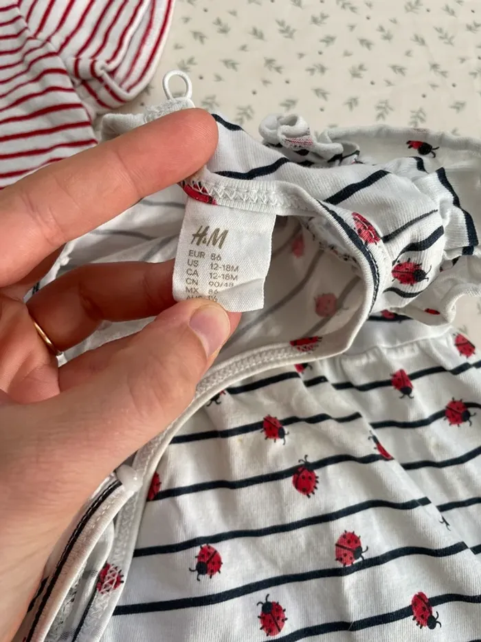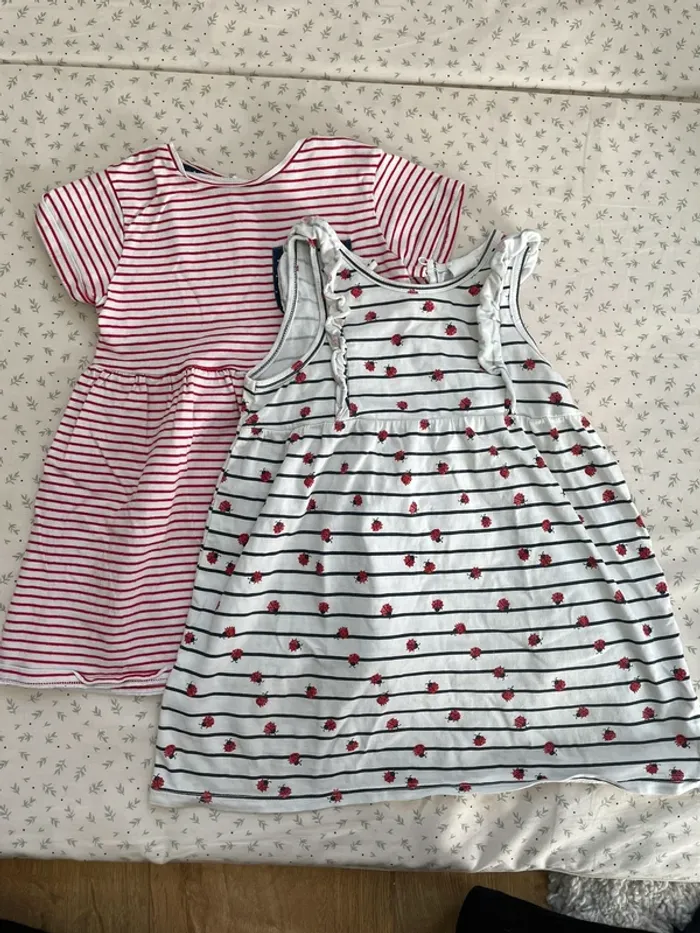 12/18 mois pour la blanche à coccinelles 18/24 mois pour la marinière rouge Très bon état