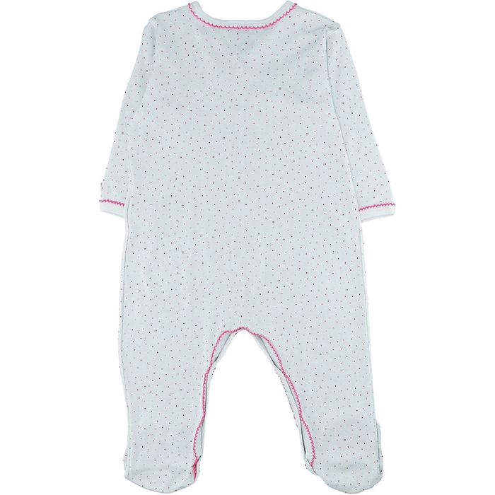 Excellent état cf. photos. Coloris : Blanc, Rose Taille : 12 mois Saison : Toutes saisons Genre : Fille DÉTAILS À pois, Pieds intégrés, Ouverture pressionnée sur le devant, Pressions à l'entrejambe pour faciliter le change Petit nœud à l'encolure COMPOSITION 100% Coton