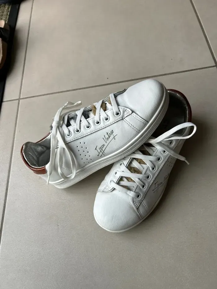 Ippon Vintage Baskets en cuir blanc ippon languette fourrure 37 - photo numéro 1